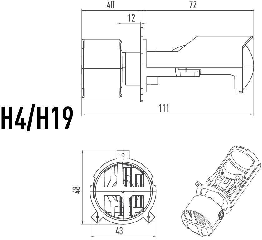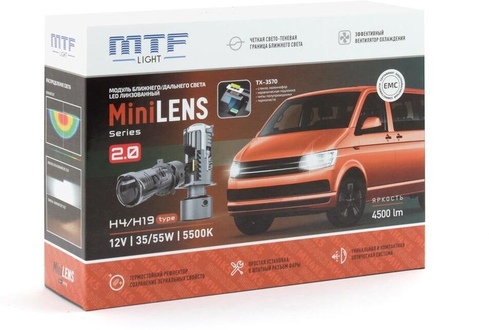 Обновленная версия 2.0 с доработанным соединительным механизмом и регулировкой наклона в горизонтальной плоскости. Светодиодные двухрежимные модули для замены галогенной лампы H4/H19 с уникальной гибридной оптической системой: для ближнего света прожекторного типа; для дальнего света - прожекторный и рефлекторный. Обладают правильно распределенным светом потоком высокой яркости в 4500lm для каждой лампы в режиме дальнего и 2700lm в режиме ближнего. Идеальная светотеневая граница ближнего света исключает ослепление встречного транспорта и обеспечивает комфортное и безопасное передвижение. Предназначены для установки в фары с гладким стеклом. НЕ УСТАНАВЛИВАТЬ в фары с рифлёным стеклом Использовать для тюнинга в строгом соответствии с нормами и требованиями вашего региона Изделие предназначено для тюнинга и не подлежит обязательной сертификации. Предназначены для установки в герметичный корпус фары. Не использовать при попадании жидкости и твердых частиц в вентилятор. Марка и тип светодиода TX-3570, TX-3570 Позиция фиксации горизонтальная Тип охлаждающей системы гибридный (мет.радиатор + вентилятор) Температурный режим работы -30℃ до +85℃ Мощность ближний св. 35Вт ±10% Мощность дальний св. 55Вт ±10% Напряжение норм. 13.2В Напряжение диапазон 9-16В Температура свечения 5500K холодный белый Яркость ближний свет 2700lm ±10% Яркость дальний свет 4500lm ±10% Габаритный размер 111mm X 48mm X 43mm Цоколь H4 Напряжение 12V Гарантия 1 год Серия MiniLENS