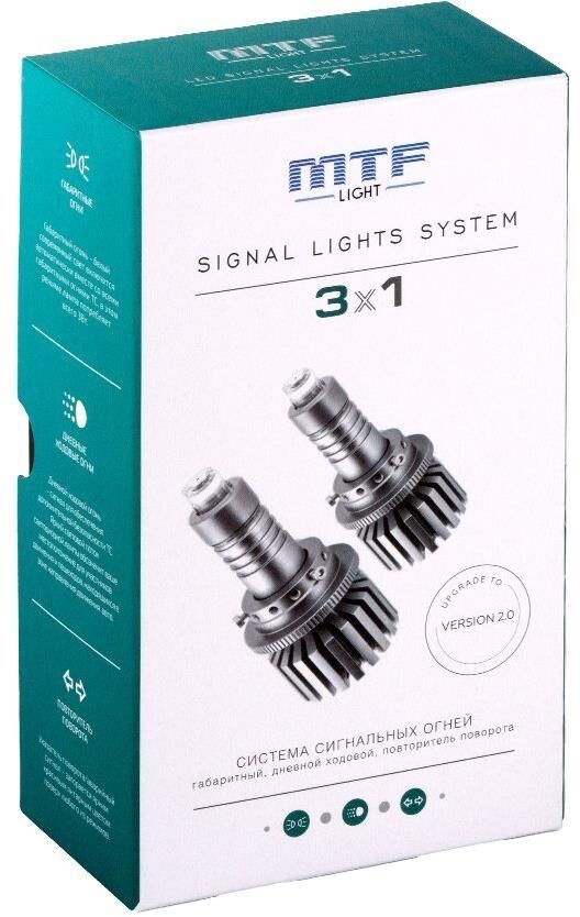 Система сигнальных огней 3 в 1 (габаритные, дневные ходовые, указатели поворота), компл. Тип охлаждающей системы мет.радиатор Напряжение норм. 12В Температура свечения 5500K холодный белый CAN-BUS есть Мощность DRL 10Вт / 800 lm Мощность габаритных огней 3Вт / 150 lm Мощность повторителя поворота 20Вт / 800 lm Цоколь универсальный P21W, PY21W, W21W, WY21W Напряжение 12V Влагозащита IP65