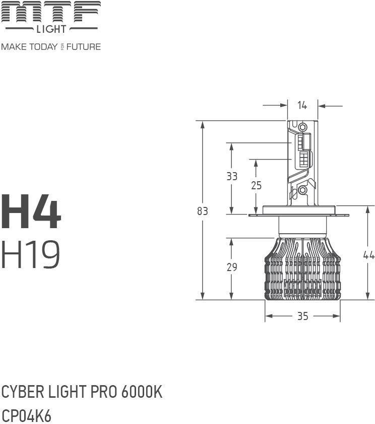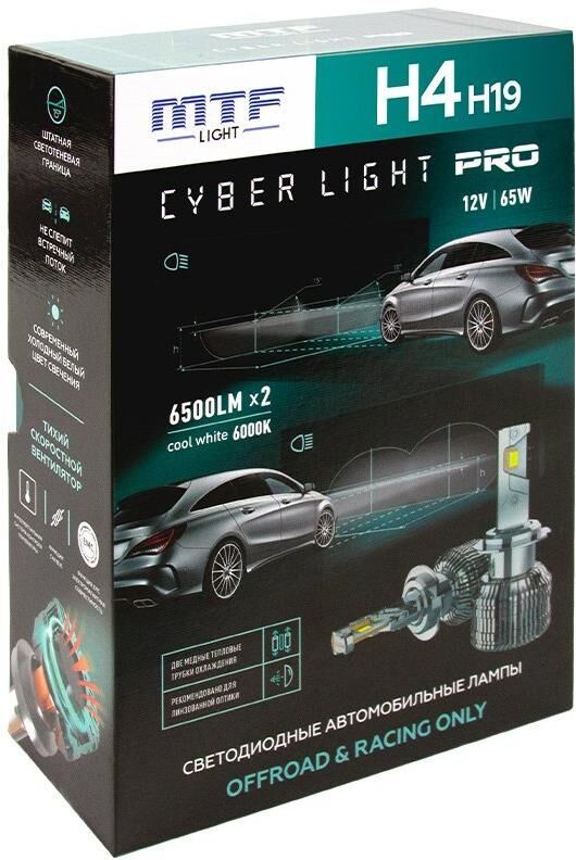 Использовать для тюнинга в строгом соответствии с нормами и требованиями вашего региона Изделие предназначено для тюнинга и не подлежит обязательной сертификации. Предназначены для установки в герметичный корпус фары. Не использовать при попадании жидкости и твердых частиц в вентилятор. Долговечно clock до 35.000 часов работы Безопасно safety Не слепит встречный поток Не излучает ИК и УФ лучи Не содержит ртути Современно light 6000K холодный белый свет Экономично lowcost ~100 люмен с 1 ватта Яркость - подобрана оптимальная мощность светодиода для освещения пути и безопасности встречного потока. Распределение света - точный расчет геометрии лампы обеспечивает правильное распределение светового пучка. Срок службы - значительный рабочий ресурс светодиода позволит забыть о замене ламп на срок до 500.000 км. Размер - система охлаждения компактных размеров с высоким коэфицентом полезного действия позволяет установить лампы на большинство автомобилей. Марка и тип светодиода TX 3570 CSP Тип охлаждающей системы гибридный (мет.радиатор + вентилятор) Температура свечения 6000K холодный белый Рабочая температура -30℃ до +85℃ CAN-BUS есть Цоколь H4 Напряжение 12V Яркость 6500 lm х 2 Гарантия 1 год Серия Cyber Light PRO Мощность 65Вт