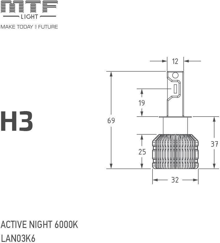 Использовать для тюнинга в соответствии с нормами и требованиями вашего региона. Долговечно - до 35.000 часов работы Безопасно - не слепит встречный поток Не излучает ИК и УФ лучи Не содержит ртути Современно - 6000K холодный белый свет Экономично ~ 100 люмен с 1 ватта Яркость - подобрана оптимальная мощность светодиода для освещения пути и безопасности встречного потока. Распределение света - точный расчет геометрии лампы обеспечивает правильное распределение светового пучка. Срок службы - значительный рабочий ресурс светодиода позволит забыть о замене ламп на срок до 500.000 км. Размер - система охлаждения компактных размеров с высоким коэффициентом полезного действия позволяет установить лампы на большинство автомобилей. Марка и тип светодиода TX-1860W15FC Тип охлаждающей системы мет.радиатор Температура свечения 6000K холодный белый Рабочая температура -30℃ до +85℃ Цоколь H3 Напряжение 12V Яркость 1750 lm х 2 Серия Active Night Мощность 18Вт