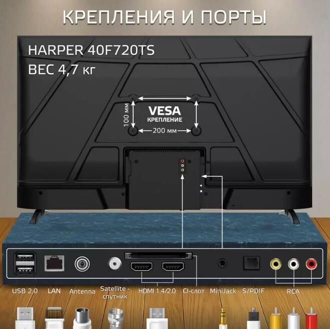Диагональ экрана: 40. Разрешение: 1920х1080. Разрешение экрана: FULL HD. Функция HDR: да. Формат экрана: 16:9. Тип подсветки экрана: Direct LED. Углы обзора: 176°. Дизайн рамки: Frameless design. Тип панели: VA. Частота обновления экрана: 60 Гц. Время отклика пикселя: 8 мс. Яркость: 240 Кд/м2. Контрастность: 5000:1. Количество цветов: 16,7 млн. Цветовой фильтр: RGB. Цифровые тюнеры: DVB-T, DVB-T2, DVB-C. Поддержка PAL: да. Поддержка SECAM: да. Поддержка NTSC: да. Встроенная акустика: 16 Вт (2x8 Вт). Декодер стереозвука NICAM/A2: да. Соединение по Wi-Fi 2,4 ГГц: да. Поддержка CI: да. Процессор: ARM Cortex-A55. Голосовое управление: Окей гугл. Внутренняя память: 8 Гб. Телетекст: 1000 стр. Операционная система: Official Google android TV. Оперативная память: 1,5 Гб. Крепление стандарта Vesa: 200х100 мм.