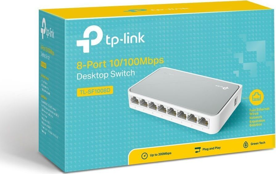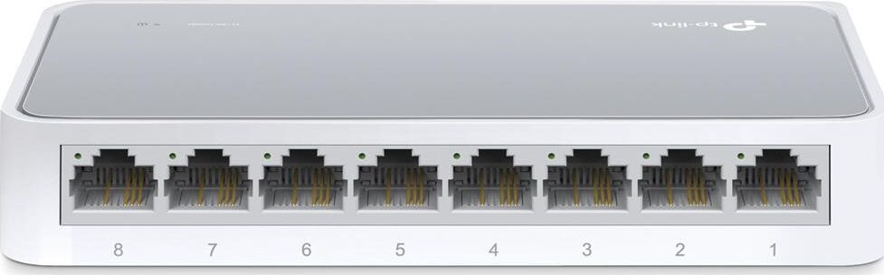 неуправляемый, настольный, порты 10-100Base-TX: 8 шт. Применение технологии Green Ethernet позволяет сэкономить до 73 % потребляемой электроэнергии. 134,5 х 79 х 22,5 мм