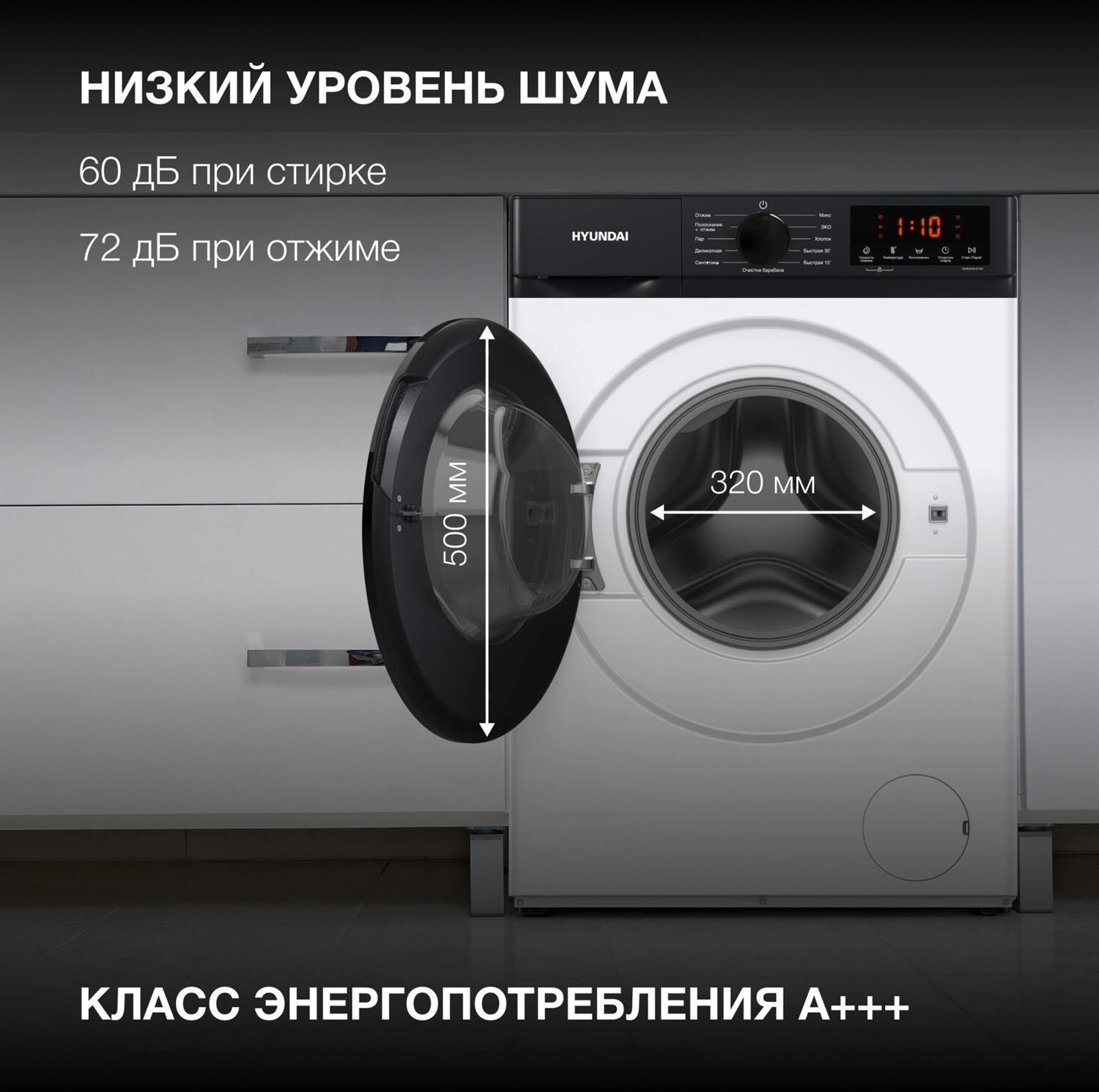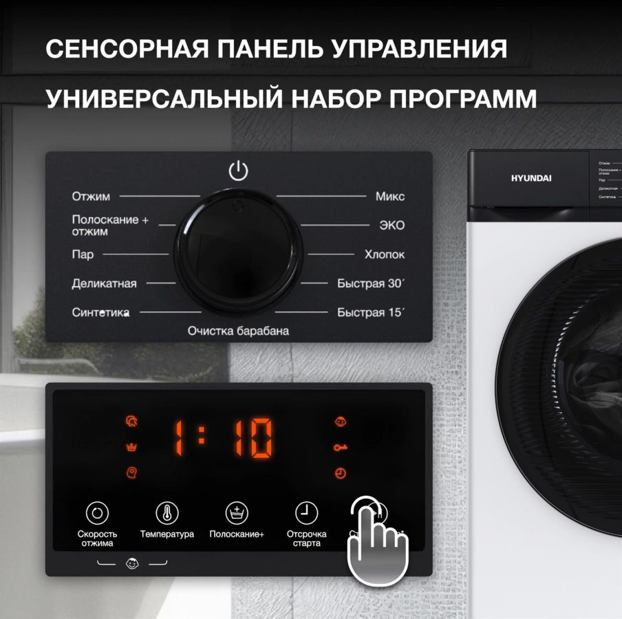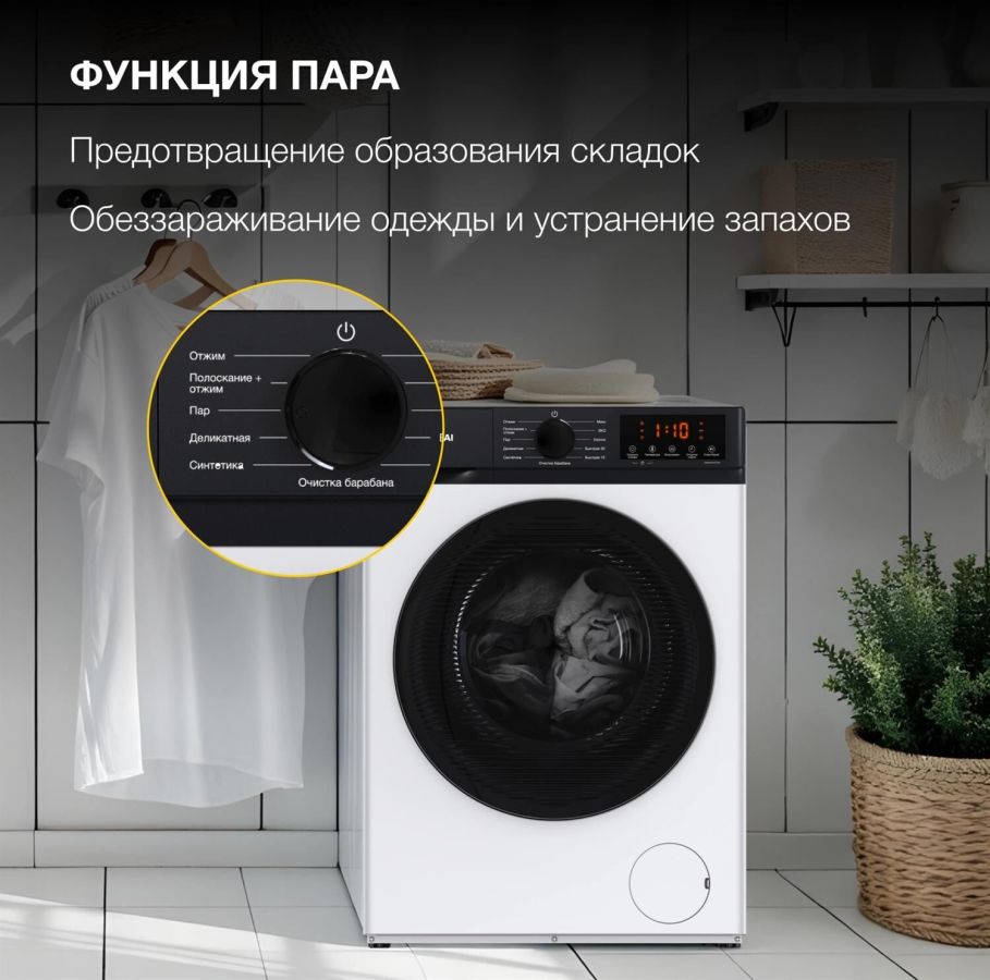 Стиральная машина, полноразмерная 50-60см, тип загрузки – фронтальная, максимальная загрузка – 8 кг, электронное управление, инверторный мотор, скорость отжима - 1200 об/мин, 12 программ, уровень шума при стирке - 56 дБ, защите от детей, отсрочка старта, максимальное время отсрочки – 24 часа, обработка паром, дозагрузка белья, класс энергопотребления – A, цвет – белый