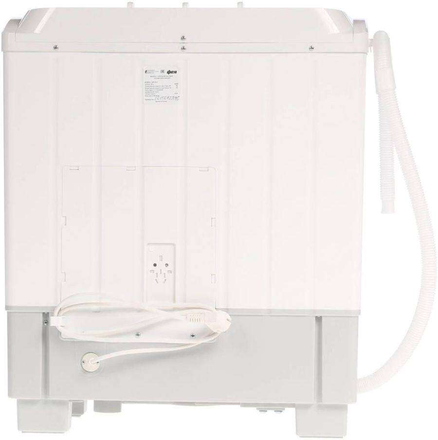 Стиральная машина,полуавтоматическая, активаторного типа с функцией отжима белья. Максимальна загрузка белья в режиме стирки 4 кг, в режиме отжима 3,5 кг. Механическое управление. Режимы стирки: нормальный; для деликатных тканей. Реверс. Таймер стирки до 15 мин, таймер отжима до 5 мин. Оттжим макс. 1300 об./мин. Сливной насос.