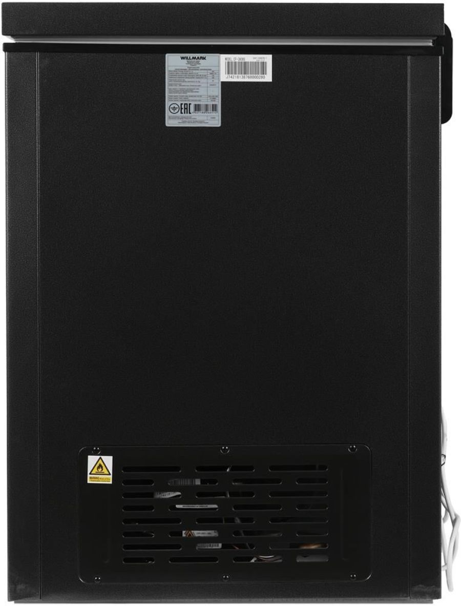 Основной цвет Чёрный; Общий объем, л. 365; Общий полезный объем, л. 330; Энергопотребление, кВтч/год 547; Мощность замораживания, кг./сутки 14; Размораживание Ручное; Температурав режиме замораживания, °C от -12 до -26; Температурав режиме охлаждения, °C от 0 до +10; Уровень шума, дБА 42; Хладагент, гр. R600a/70; Количество камер 1; Количество дверей 1; Стеклянная крышка Нет; Открытие двери Откидное; Количество подвесных корзин 3; Дисплей Нет; Тип управления Поворотный механизм; Оповещения/индикация Индикация работы; Напряжение питания, В/Гц 230/50; Потребляемая мощность, Вт. 150; Замок Нет; Суперзаморозка Есть; Внутреннее освещение Нет; Инверторный компрессор Нет; Количество компрессоров 1; Работа в неотапливаемых помещениях (до -15°С) Да; Класс энергопотребления A+++; Климатические классы SN/N/ST/T; Габариты изделия Ширина*Глубина*Высота, мм. 1105*625*845; Габариты в упаковке Ширина*Глубина*Высота, мм. 1152*655*880; Вес, кг. 42,2; Вес в упаковке, кг. 38; Гарантия 3 года.