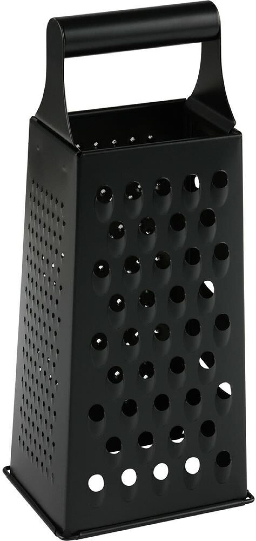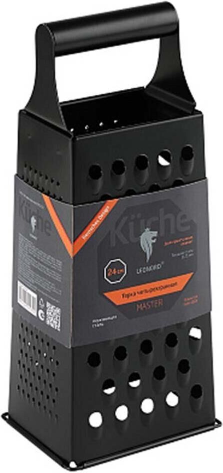 Терка четырехгранная с покрытием non-stick К поверхности этой терки не прилипают кусочки овощей, терку легко очистить, просто подставив под струю воды. Покрытие имеет антибактериальный эффект. Аксессуары с таким покрытием служат дольше, чем обычные, покрытие защищает поверхность от износа. Толщина стали: 0,25 мм Размер: 10,6*8,1*24 см Вес: 180 гр Материал: нержавеющая сталь (430)
