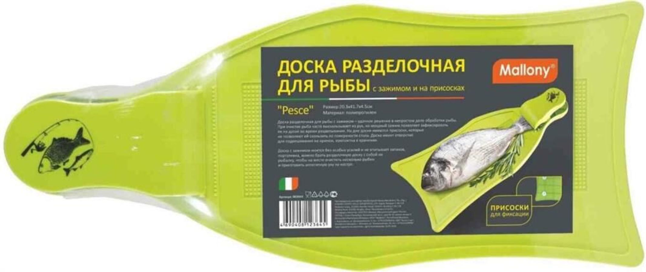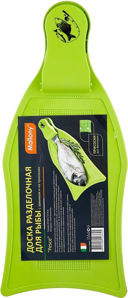 Доска разделочная для рыбы "Pesce" с зажимом и на присосках размер:20.3x41.7x4.5см материал: полипропилен Упаковка: термоусадка с цветным вкладышем Удобная разделочная доска предназначенная для чистки и разделования рыбы. С одной стороны размещен тугой