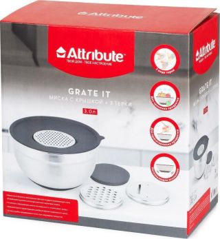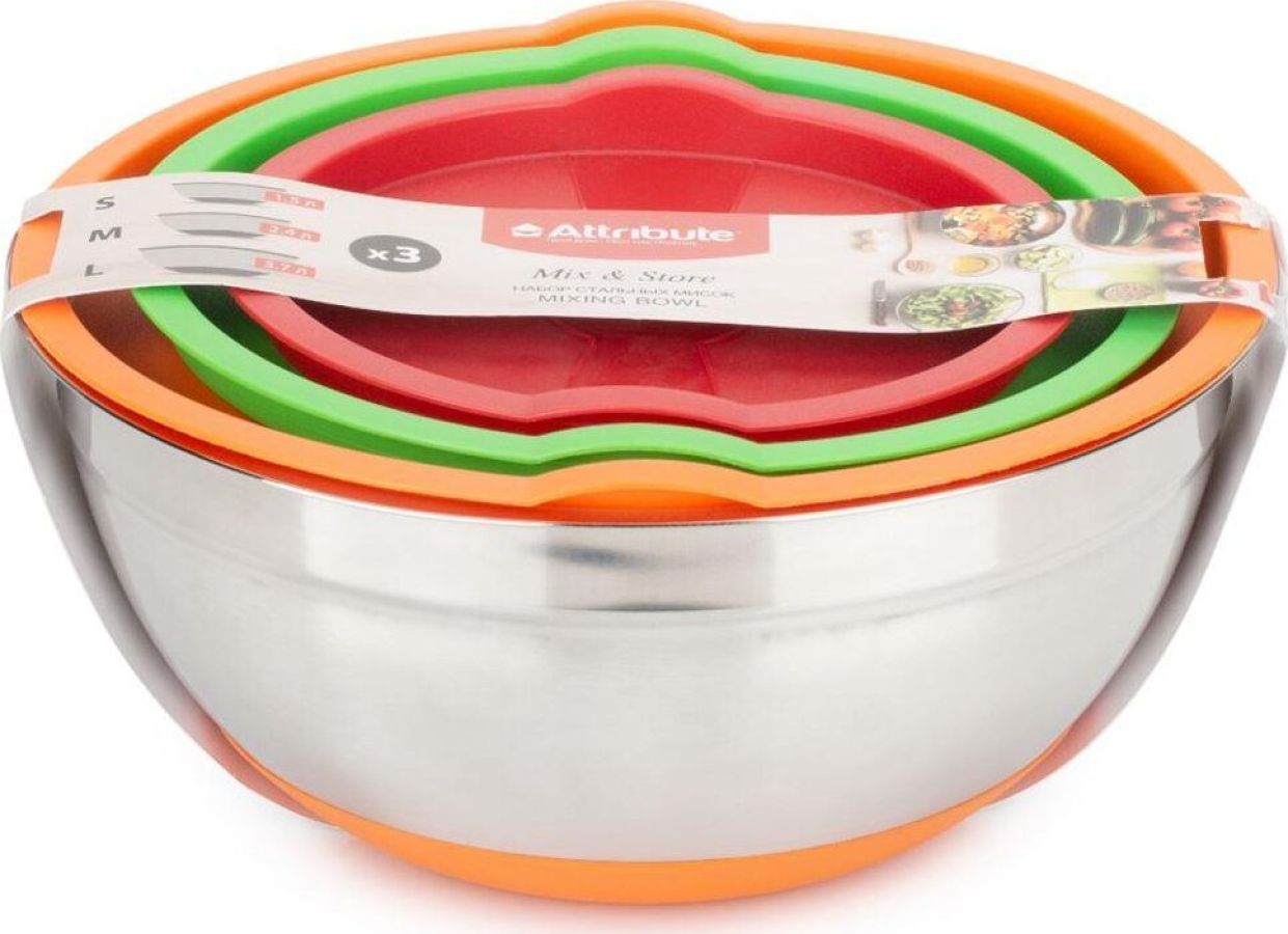Набор мисок с крышками MIX&STORE 3шт 1.5л+2.4л+3.7л СТАЛЬ НЕРЖАВЕЮЩАЯ, ПЛАСТМАССА
