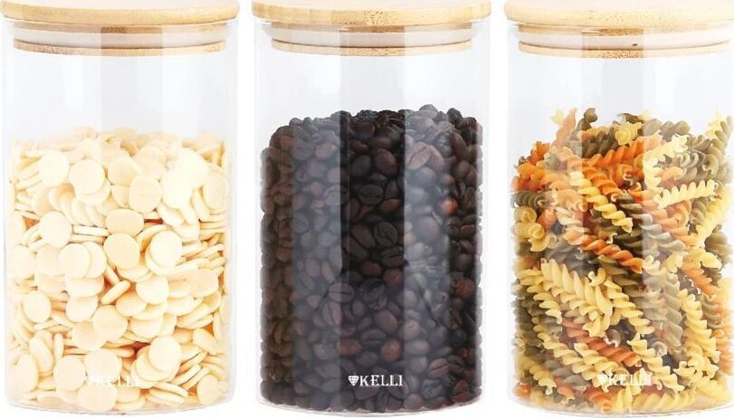 Набор стеклянных банок для сыпучих с бамбуковой крышкой. В наборе три банки. Объём каждой 1 л. Экологичные материалы: боросиликатное стекло и бамбук. Размер: 10*17см. Удобно мыть и хранить.