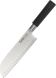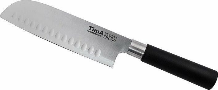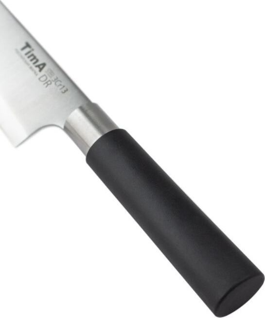 Нож представляет собой модифицированную сталь марки 440А (одна из самых популярных марок ножевой стали среднего ценового диапазона), закаленную до твердости примерно 57 HRC. Высокое содержание хрома (13%) не только увеличивает твёрдость и износостойкость, улучшая тем самым режущие свойства лезвия, но и придаёт стали антикоррозийные свойства. А благодаря повышенному Ручка цилиндрической формы не скользит даже в мокрой руке. Материал ручки обладает высокой стойкостью к маслам, щелочам и кислотам, которые на кухне не редкость. Устойчив к загрязнениям, легко моется в посудомоечной машине и не оставляет на поверхности следов от пальцев.
