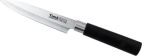 Нож представляет собой модифицированную сталь марки 440А (одна из самых популярных марок ножевой стали среднего ценового диапазона), закаленную до твердости примерно 57 HRC. Высокое содержание хрома (13%) не только увеличивает твёрдость и износостойкость, улучшая тем самым режущие свойства лезвия, но и придаёт стали антикоррозийные свойства. А благодаря повышенному Ручка цилиндрической формы не скользит даже в мокрой руке. Материал ручки обладает высокой стойкостью к маслам, щелочам и кислотам, которые на кухне не редкость. Устойчив к загрязнениям, легко моется в посудомоечной машине и не оставляет на поверхности следов от пальцев.