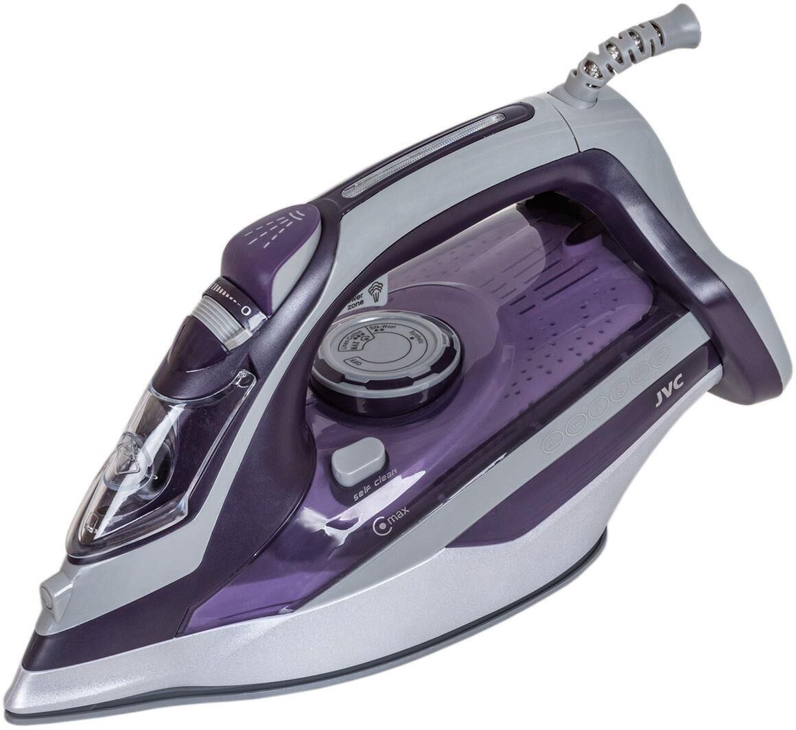 Утюг паровой jvc JRI04. Керамическая подошва. Мощность 2400 Вт. Регулируемая температура. Регулируемая подача пара. Функция сухого глажения. Паровой удар. Функция «Спрей». Вертикальный пар. Функция самоочистки. Противокапельная система. Система защиты от накипи. Авто-выключение. Вращение шнура 360˚. Объём резервуара для воды 450 мл. Постоянный пар 20+/-5 г/мин. Паровой удар до 120 г/мин. Длина кабеля 1,9 м