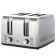 Тостер, Мощность 1500 Вт, 7 степеней поджаривания, Функция подогрева, разморозки и "отмена", Съемный лоток для сбора крошек, Автоматическое центрирование тостов, Индикация режима работы, Автоматическое отключение, Корпус из нержавеющей стали, Отсек для хранения электрошнура, Напряжение сети: 220-240 В, 50-60 Гц