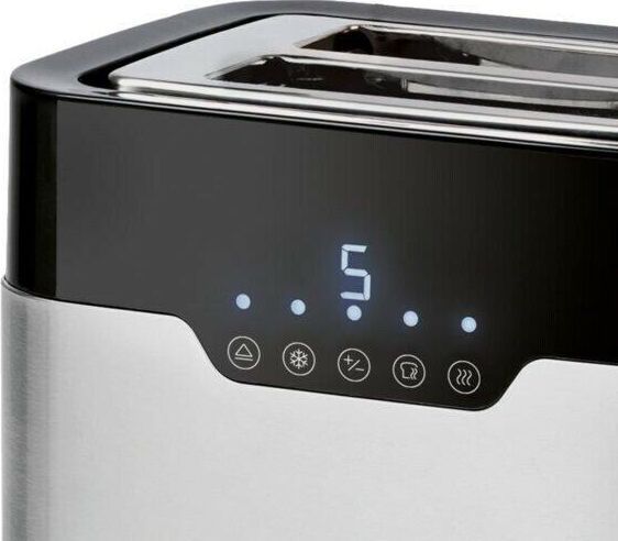 Мощность 920 Вт Управление Сенсорное Кол-во режимов 7 Режимы Подогрев, Разморозка Материал корпуса Нержавеющая сталь, Пластик Особенности Cъемный поддон для сбора крошек, LED-дисплей, Ненагревающийся корпус, Одностороннее обжаривание, Отсек для хранения шнура, Функция отмены