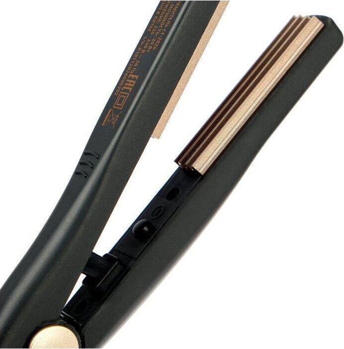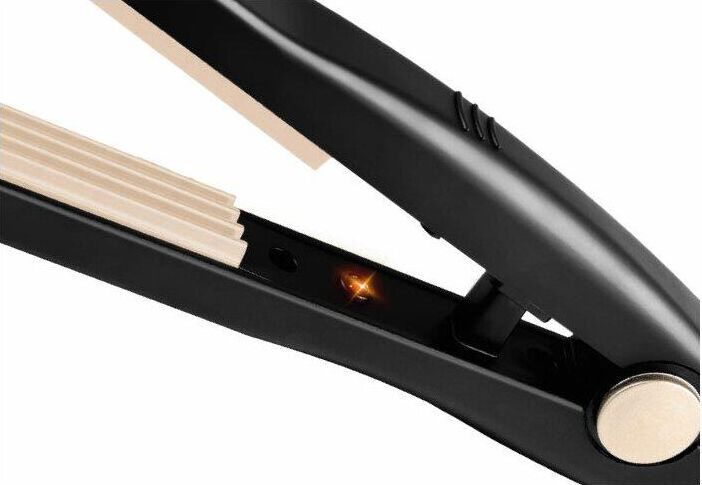 Профессиональная техника; нет; Цвет корпуса; черный; Вид щипцов; гофре; Мощность (Вт); 20 Вт; Время нагрева (сек.); 60 секунд; Регулировка температуры; нет; Количество режимов; 1; Конструктивные особенности; Индикация; индикация включения; Дисплей; нет; Покрытие щипцов; керамическое; Размер волн гофре; мелкое гофре; Длина сетевого шнура; 1.8 м; Вращение шнура вокруг своей оси; нет; Безопасность; Автоматическое отключение; нет; Защита от перегрева; нет; Термоизолированный наконечник; есть
