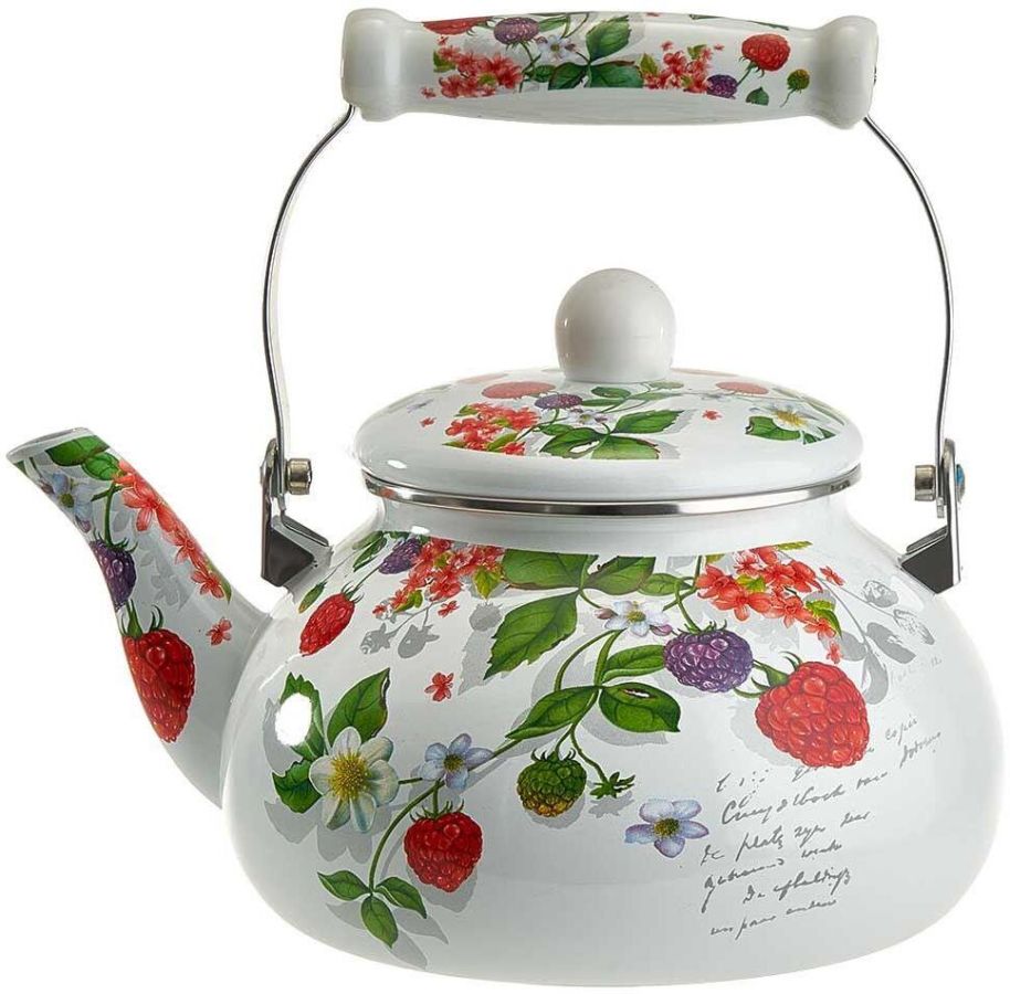 Параметры Объем 2,5 л Описание Чайник эмалированный с керамической ручкой Материалы: эмалированная сталь, нержавеющая сталь, керамика Серия: Ягоды Трехслойное внутреннее и внешнее эмалевое покрытие, устойчивое к воздействию пищевых кислот Эргономичная подвижная керамическая ручка Зачерненное дно с повышенной термоотдачей Классический дизайн Экологически чистые материалы Может быть использован на всех типах кухонных плит: электрических, газовых, керамических, индукционных Подходит для мытья в посудомоечной машине Упаковка: цветная коробка