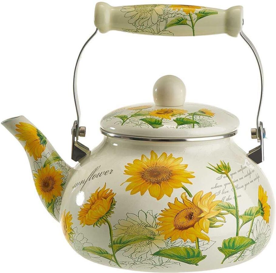 Параметры Объем 2,5 л Описание Чайник эмалированный с керамической ручкой Материалы: эмалированная сталь, нержавеющая сталь, керамика Серия: Подсолнухи Трехслойное внутреннее и внешнее эмалевое покрытие, устойчивое к воздействию пищевых кислот Эргономичная подвижная керамическая ручка Зачерненное дно с повышенной термоотдачей Классический дизайн Экологически чистые материалы Может быть использован на всех типах кухонных плит: электрических, газовых, керамических, индукционных Подходит для мытья в посудомоечной машине Упаковка: цветная коробка