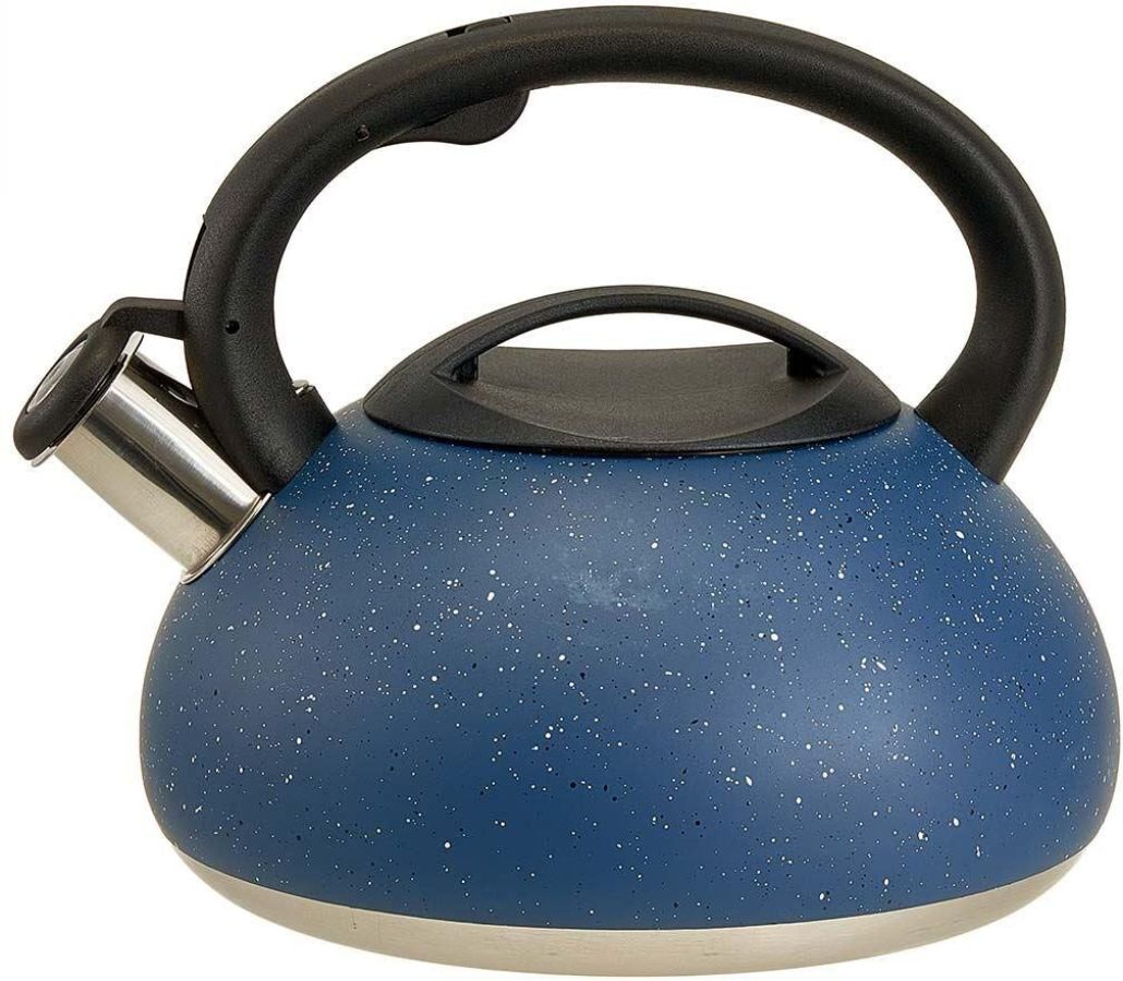 Параметры Объем 3 л Толщина стали 0,6 мм Описание Чайник из нержавеющей стали со свистком Высококачественная нержавеющая сталь c цветным декоративным покрытием Цвет: синий гранит Термосберегающее индукционное дно Нейлоновая ручка с противоскользящим покрытием и с кнопкой открывания носика Цвет ручки и крышки: черный Пригоден для использования на всех типах кухонных плит, включая индукционные Упаковка: цветная коробка