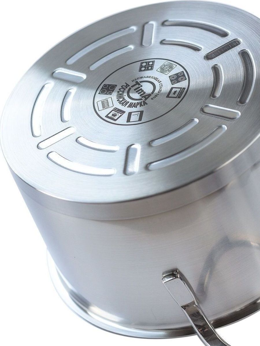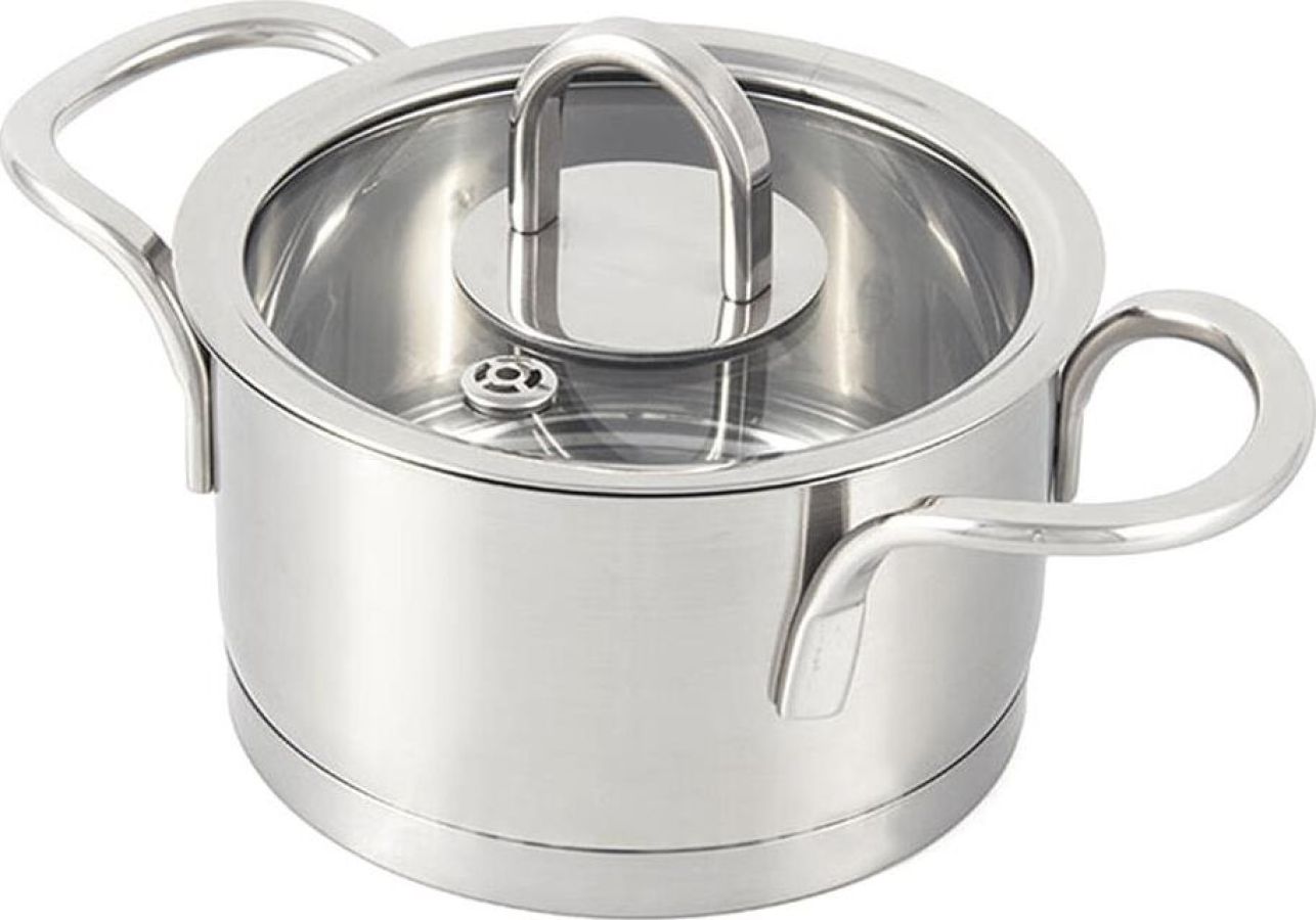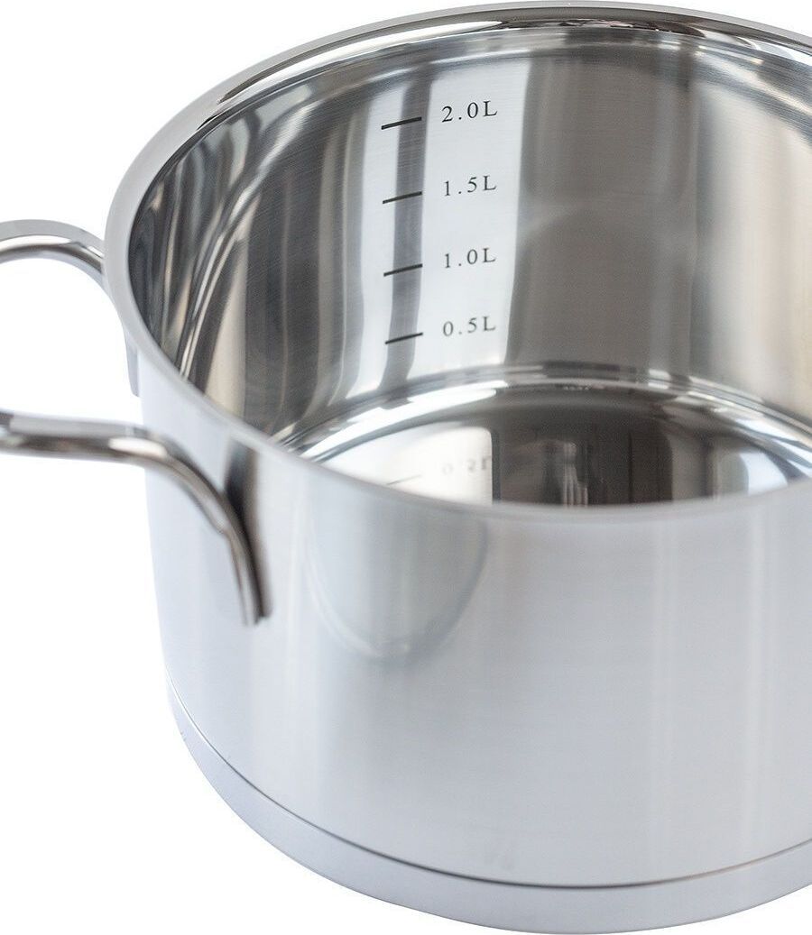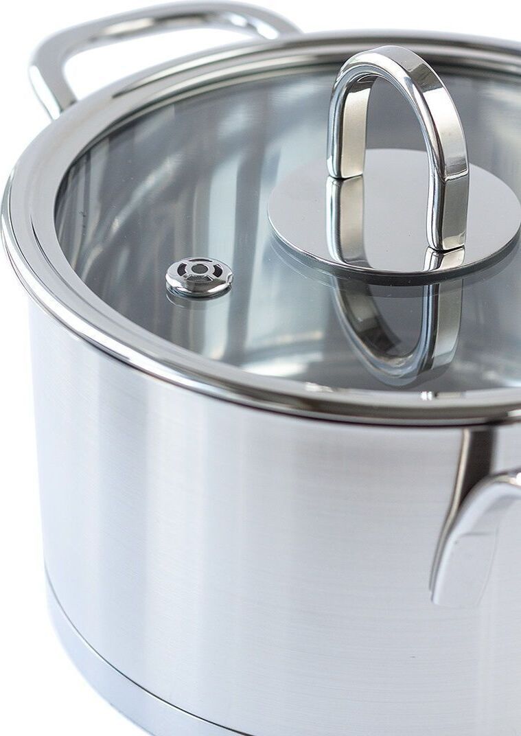 Из нержавеющей стали 18/10, подходит для использования в ПММ. Теплоемкое капсульное дно. Стеклянная крышка в комплекте. Подходит для всех типов плит. Мерная шкала на внутренней стенке