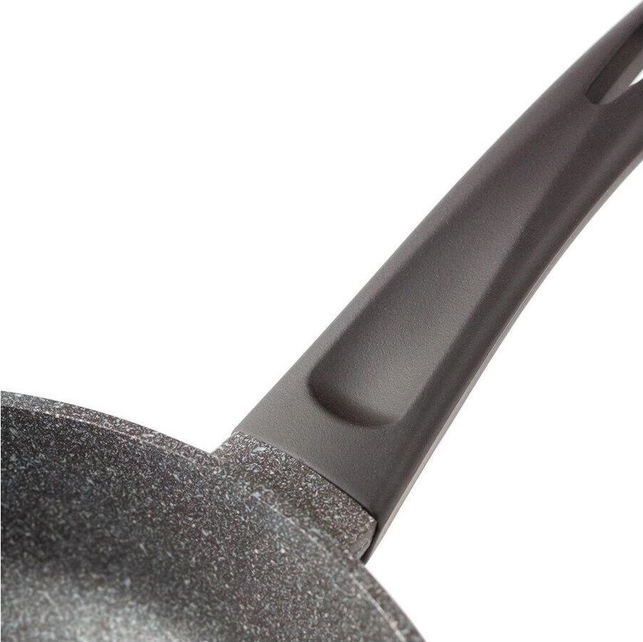 Сковороды имеют прочное, надёжное антипригарное покрытие Greblon non-stick C2+ от Weilburger Coatings GmbH (Германия). Покрытие экологически безопасно, т.к. не содержит PFOA (перфтороктановую кислоту). Высокий бортик в 5см позволит не только жарить, но и тушить. За счёт такой высоты, по сути вы можете использовать сковороды также как и сотейники. Подходит для всех плит, кроме индукции. Можно мыть в посудомоечной машине.