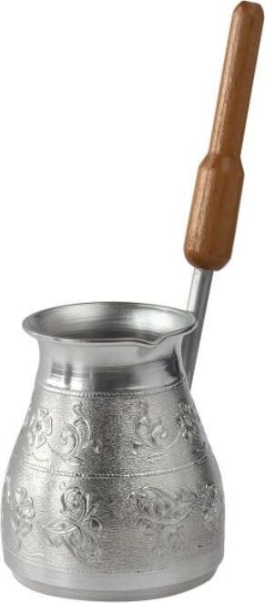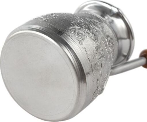 Турка изготовлена из меди, прекрасно подходит для приготовления настоящего кофе на плите. Внешняя поверхность имеет декоративное тиснение, что придает изделию оригинальный внешний вид. Внутренняя сторона покрыта пищевым оловом. Изделие оснащено небольшим носиком и удобной не нагревающейся деревянной ручкой с петелькой для подвешивания. Надежное крепление ручки гарантирует безопасное использование.