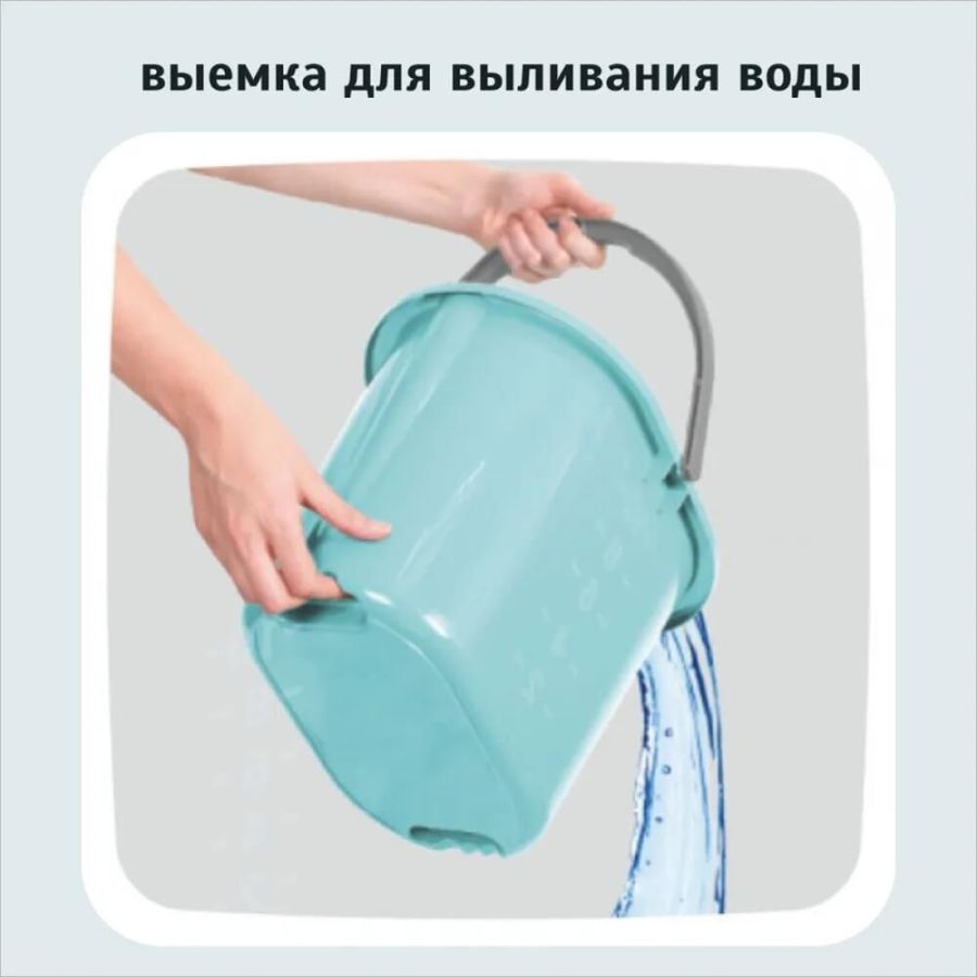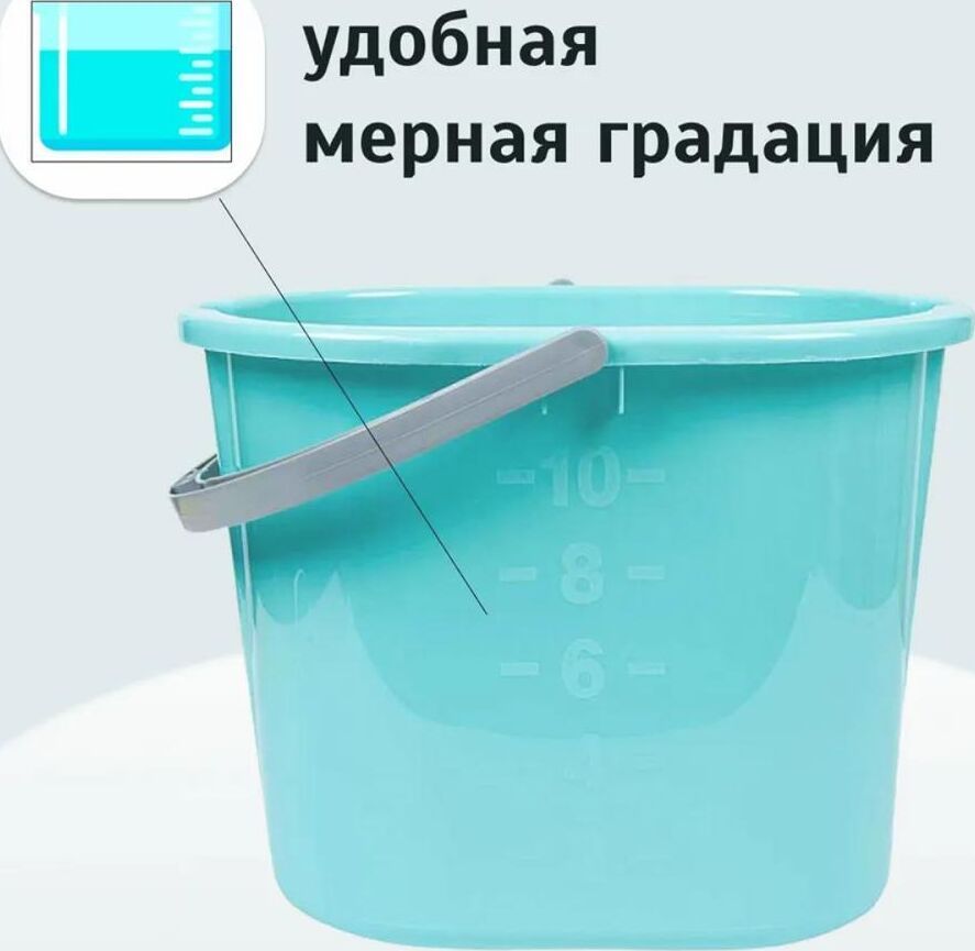 Ведро из традиционного пластика PP (полипропилен) с удобной ручкой и выемкой для выливания воды с двух сторон. Вмещает 10 л воды. Удобное в эксплуатации, на корпусе ведра есть мерная градация для определения уровня воды.