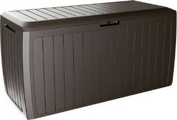В ящиках для хранения удобно хранить подушки или другие предметы, а также эти ящики можно использовать в качестве столика. Изготовлены из пластика, имитирующего натуральный ротанг, дерево и бамбук. Ящики для хранения легко и быстро собираются без дополнительных инструментов. С двух сторон имеются ручки для переноски. Благодаря наличию проушины, ящик можно закрыть навесным замком. •Объем: 290 л •Размер: 116x47x60 см •Цвет: венге •Защищает содержимое от дождя