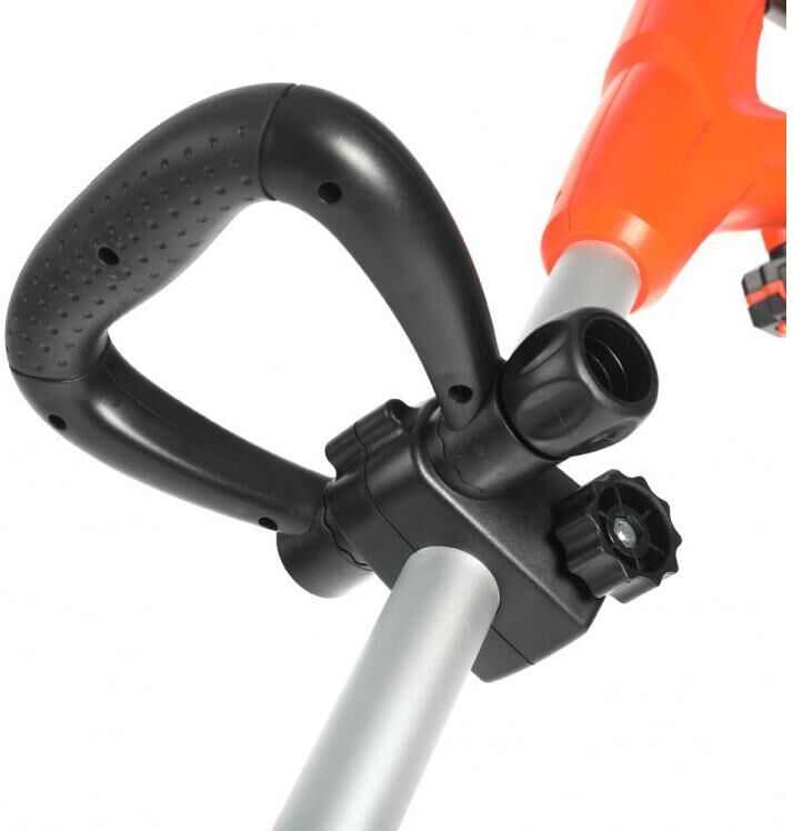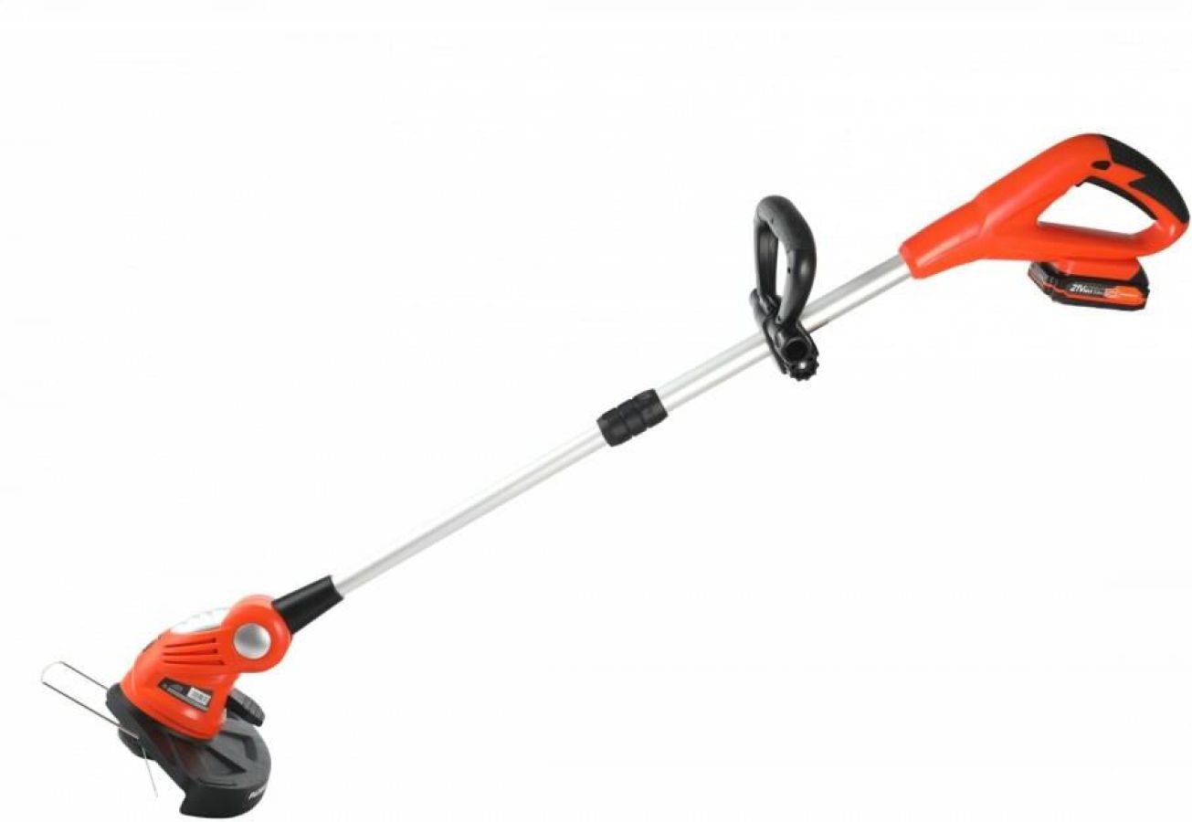 Ширина скашивания, см 26. Напряжение аккумулятора, В 21. Тип аккумулятора Li-Ion. Емкость аккумулятора, А*ч 2. Частота вращения, об/мин 8000. Режущий элемент леска. Диаметр режущей лески, мм 1,2. Тип двигателя электрический. Тип рукоятки D-образная. Тип ремня плечевой. Тип штанги регулируемая, 80-120 см. Расположение двигателя нижнее. Количество аккумуляторов в комплекте, шт 1. Вес, кг 3.475.