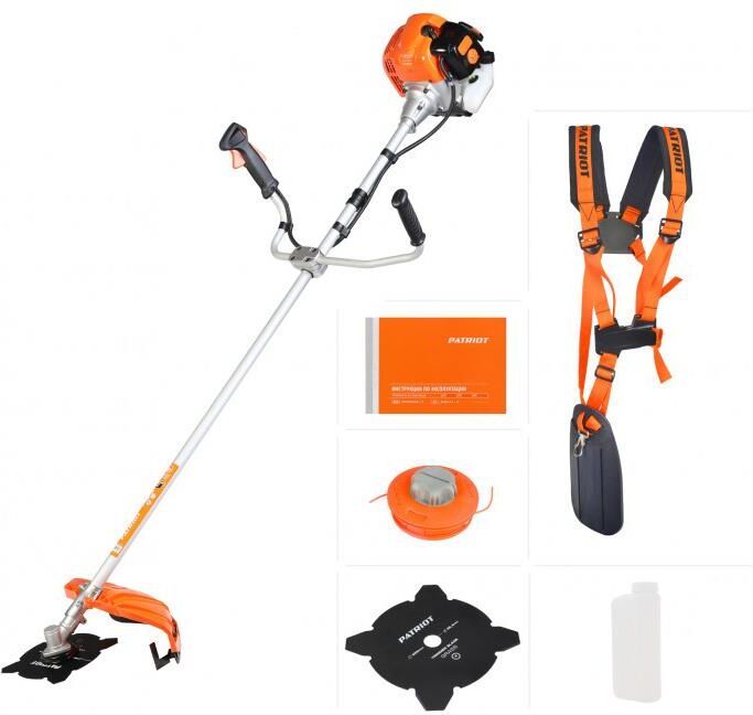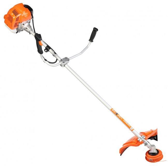Макс. мощность, л.с. 2,5, Ширина захвата, см 44, Объем двигателя, см3- 43, Объем бака, л 1,1, Легкий старт, Диаметр лески, мм 3, Пильный диск 4Т, Тип рукоятки U-образная (велосипедная), Жесткий вал, Диаметр ножа, см 25,5. (неразборная штанга)