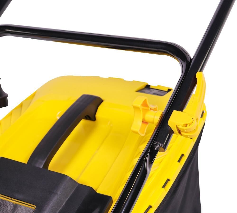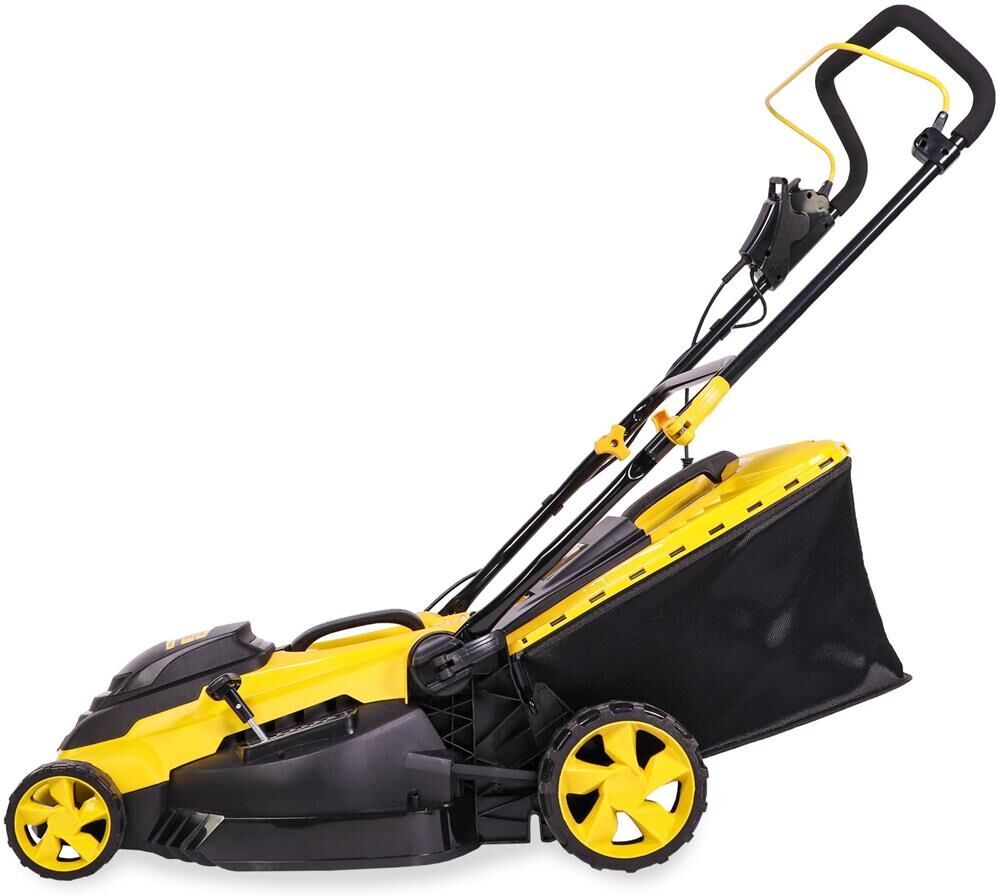Мощность двигателя, (Вт) 1800. Напряжение сети (В, Гц) 230/50. Вес c травосборником, (кг) 13. Ширина кошения, (мм) 420. Высота кошения, (мм) 25-75. Тип/объем травосборника, (л) пластик+ткань/50. Регулировка высоты кошения/количество положений однорычажная/6. Уровень мощности звука, (дБ) 96. Уровень звукового давления, (дБ) 81,8. Уровень вибрации на рукоятке, (м/с2) 4,5.