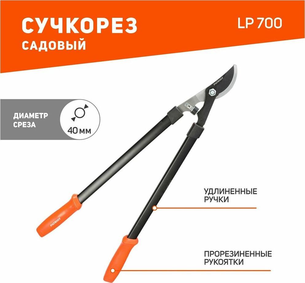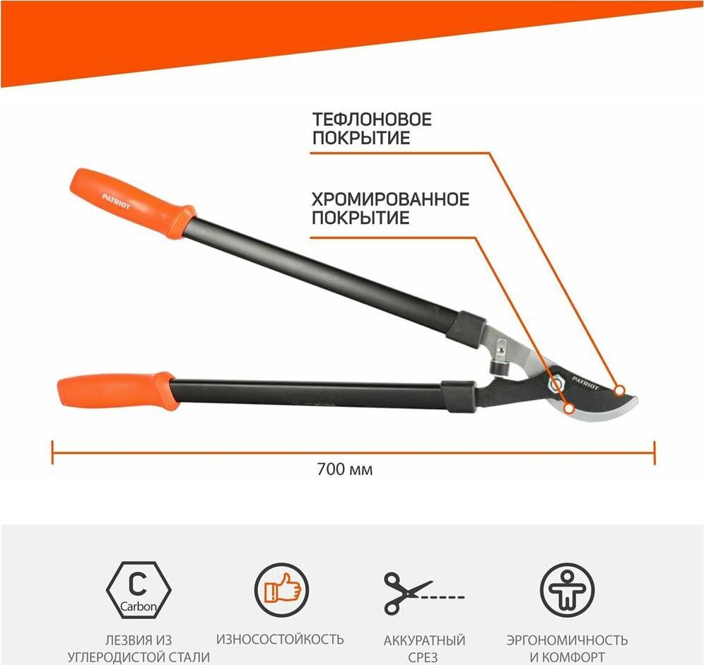 Сучкорез PATRIOT LP 700 777005700 укомплектован лезвиями с тефлоновым покрытием, что позволяет эффективно резать толстые ветки, а также большое количество листвы. Инструмент длительное время сохраняет остроту заточки за счет использования углеродистой стали. Общая длина, мм 700 Материал лезвия углеродистая сталь Телескопические рукоятки нет Фиксатор лезвий нет Прецизионная заточка лезвий нет