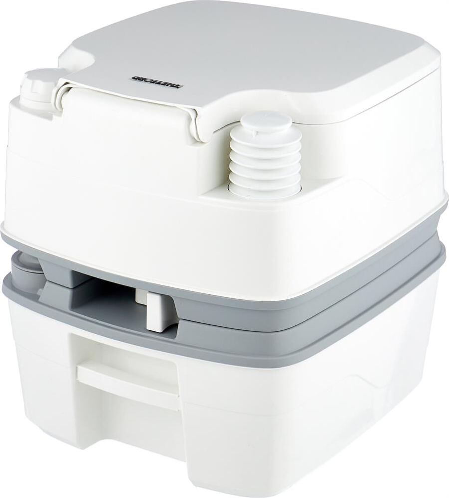 Купить биотуалет Porta Potti Qube 165 можно для использования на приусадебном участке, в доме и других местах, которые не оборудованы сантехническими сетями забора воды и ее стока. У него — гигиенически безопасная современная конструкция, состоящая из 2 частей, легко разъединяющихся. Верхняя — это емкость со смывающей жидкостью, нижняя — емкость для отходов. Для удобства открывания на крышке есть специальная выемка. В биотуалете Thetford Porta Potti Qube 165 механическая помпа смывания, поэтому можно не заботиться о регулярной замене батареек. Эта модель невысокая, так что ею могут пользоваться и взрослые, и дети. Она имеет небольшие размеры и вес, что упрощает ее транспортировку в автомобиле и процесс очищения нижнего резервуара. Несмотря на компактность, емкости в таком портативном туалете очень вместительные. Объем нижнего бака биотуалета для стоков 21 л, верхний бак для смывной воды 15 л, сильфонная помпа для смыва. Экономичная модель для 1-5 пользователей.