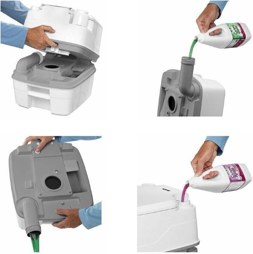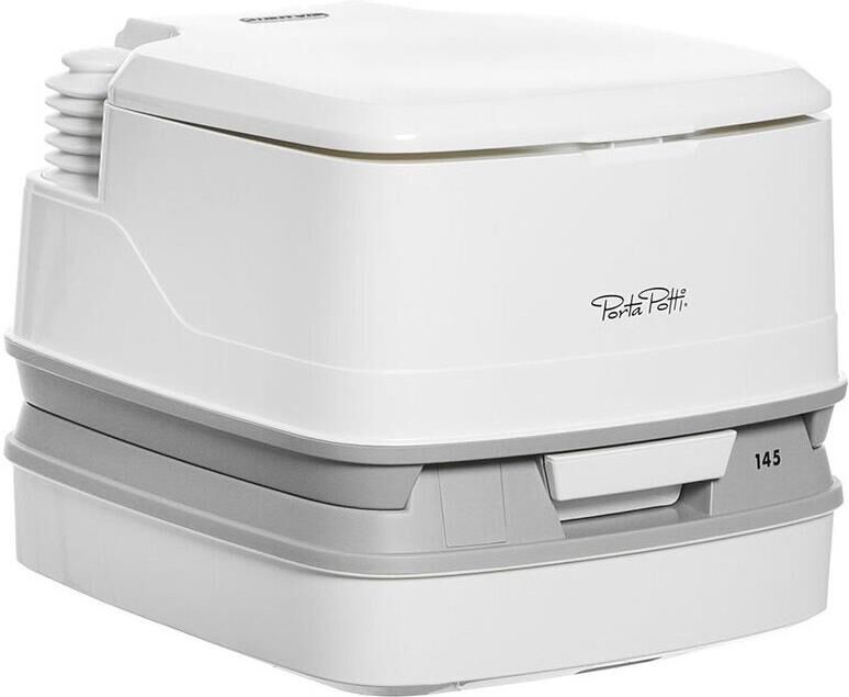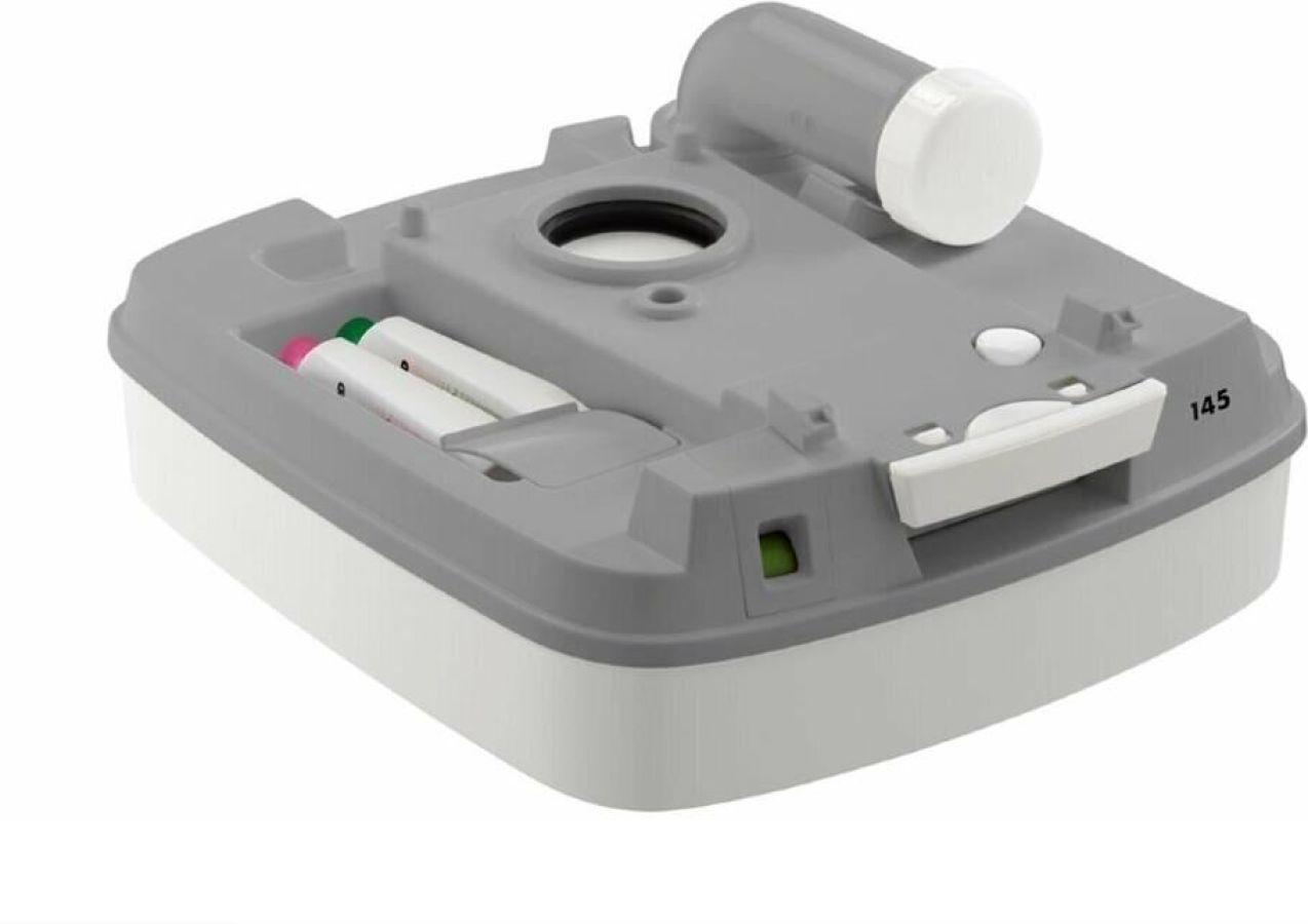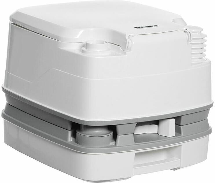 У него — гигиенически безопасная современная конструкция, состоящая из 2 легко разъединяющихся частей. Верхняя — это емкость со смывающей жидкостью, нижняя — емкость для отходов. Для удобства открывания на крышке есть специальная выемка. В биотуалете Thetford Porta Potti Qube 145 механическая помпа смывания, поэтому можно не заботиться о регулярной замене батареек. Эта модель невысокая. Ей могут пользоваться и взрослые, и дети. Она имеет небольшие размеры и вес, что упрощает ее транспортировку в автомобиле и процесс очищения нижнего резервуара. Несмотря на компактность, емкости в таком портативном туалете очень вместительные. Ими можно пользоваться несколько дней,не очищая. Объем нижнего бака биотуалета для стоков 12 л, верхний бак для смывной воды 15 л, сильфонная помпа для смыва. Модель на 1-3 пользователей.