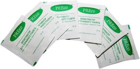 Смесь специально выращенных микроорганизмов и энзимов. Применяется в торфяных туалетах для ускорения процесса компостирования фекальных отходов. Применяется только в комплексе с торфяной композицией. Поддается биологическому разложению более чем на 98%. 16 пакетиков рассчитаны на 4 месяца применения.