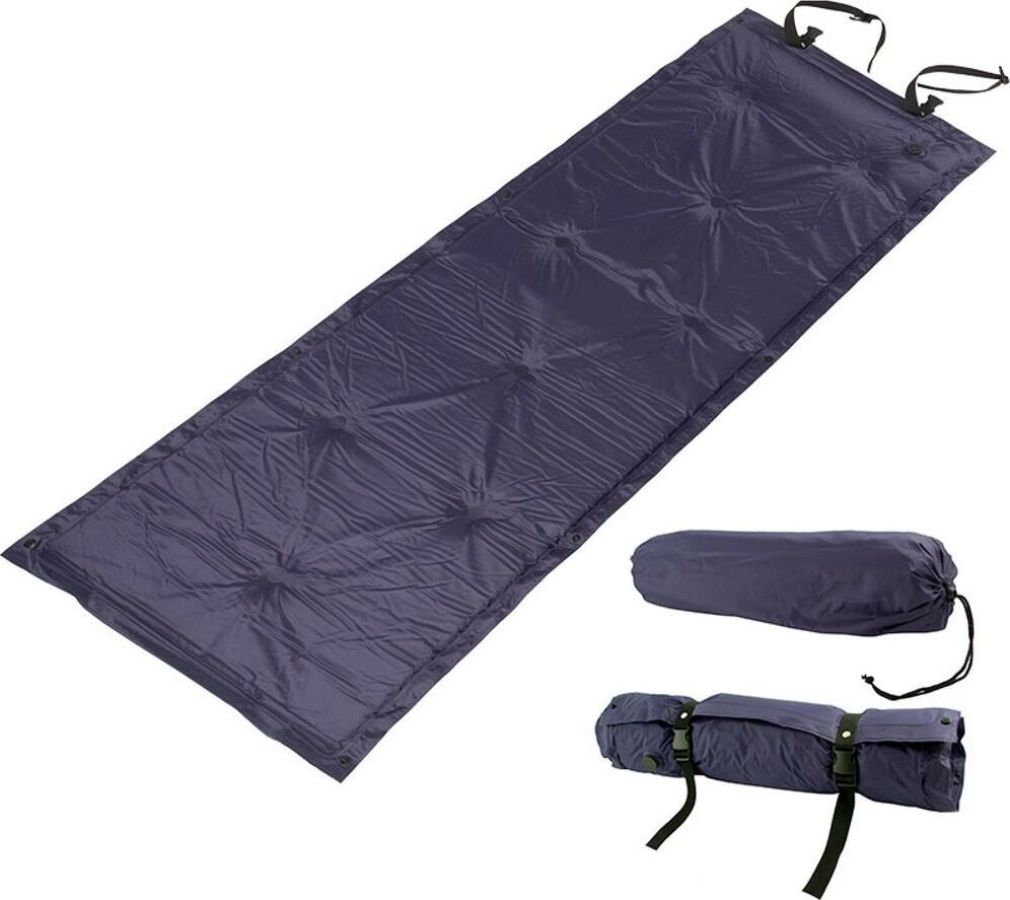 Без подушки. Размер: 183*57*2,5 см, вес 920г, материал полиэстер 190T с покрытием ПВХ. Внутренний наполнитель поролон (пенополиуретан) Чехол для хранения и переноски в комплекте. Боковые кнопки для возможности соединения ковриков друг с другом