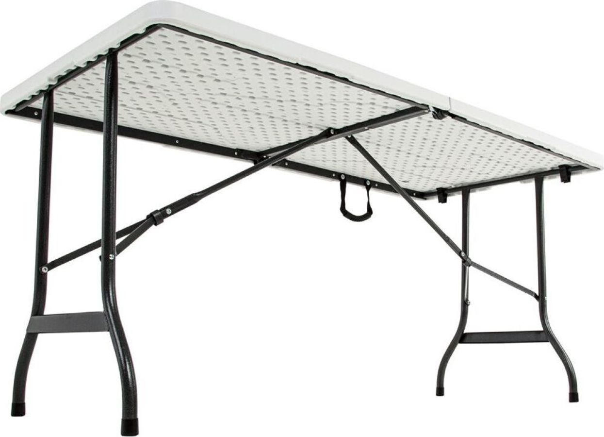 Стол раскладной, выполнен из качественного пластика, каркас - сталь. Складывается в одно движение. В сложенном состоянии очень компактный. В дождь, на зиму или пока вас нет на даче можно убрать. Стол подойдет как для дачи или сада, так и для помещения. Не боится влаги. Есть возможность фиксации ножек.Длина: 152 см.Высота: 72 см.Столешница: пластик HDPE (ш 4,5 см) Цвет: Белый.Каркас: стальная труба O 25х1 мм .Упаковка: 1 шт/1 коробка Вес нетто 11,4 кг. Вес брутто: 12,4 кг.Размер упаковки: 77,5X76X9 см.Торговая марка Green Glade.