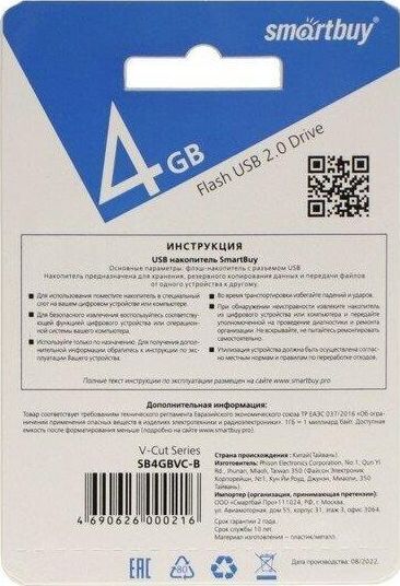 Флэш-накопитель , Объем 4 ГБ, Интерфейсы USB 2.0 Скорость чтения, Мб/с 25 Скорость записи, Мб/с 15 Конструкция Флеш-карты Светодиодный индикатор работы Материал корпуса флеш-накопителя Пластик