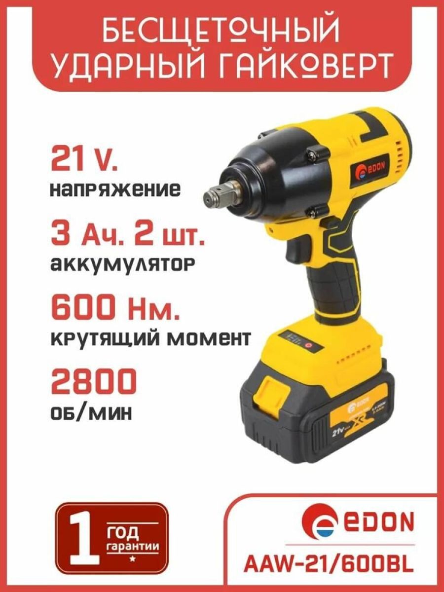 Питание от аккумулятора Максимальный крутящий момент, Н∙м 600 Емкость аккумулятора, А∙ч 3 Напряжение аккумулятора, В 21 Макс. число оборотов холостого хода, об/мин 2800 Тип аккумулятора Li-Ion Электронная регулировка частоты вращения Лампа точечной подсветки Количество аккумуляторов в комплекте, шт. 2 Съемный аккумулятор Блокировка кнопки включения В комплекте кейс