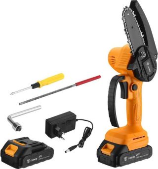 Мощность двигателя: 1 кВт Напряжение: 220 В Длина кабеля: 1.4 м Объем масляного бака: 0.045 л Длина шины: 12"/30 см Количество звеньев: 45 шт. Толщина звеньев: 1.3 мм Макс. обороты без нагрузки: 5000 об/мин Тормоз цепи: Электрический Автоматическая смазка цепи: Есть Гарантия: 1 год ВхШхГ упаковки: 23х15х36 см Вес брутто упаковки: 3 кг Объем упаковки: 0,010868 куб. м Комплект поставки: пила с кабелем питания, защитный щиток, направляющая шина, пильная цепь, защитный чехол, набор ключей, инструкция