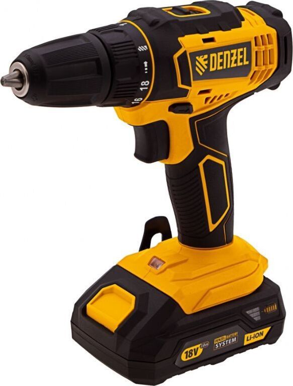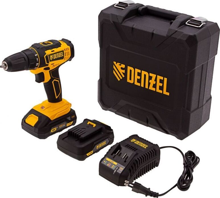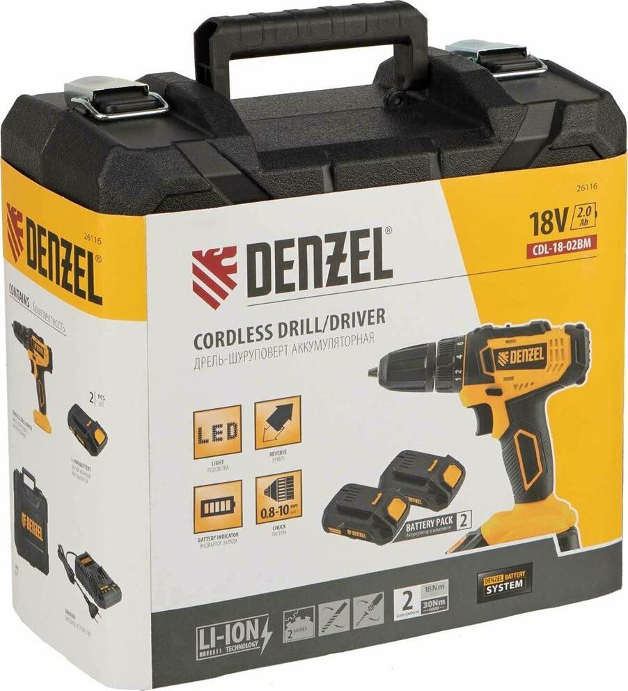 DENZEL CDL-18-02BM Дрель-шуруповерт аккумуляторная , LI-ION, 18 В, 2 аккумулятор 26116