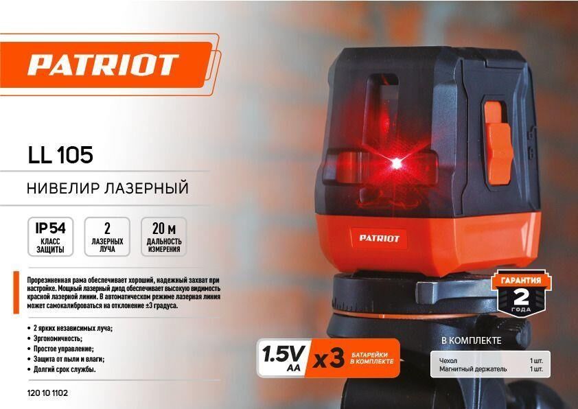 Неливер-Измерительный инструмент Patriot Professional Дальность измерения без приемника, м 15 Длина волны, Нм 650 Класс лазера 2 Резьба под штатив, дюйм 1/4 Тип выравнивания автоматическое Тип устройства линейный Точность, мм/м ± 1 Цвет луча красный Класс защиты IP54 Количество лучей, шт 2
