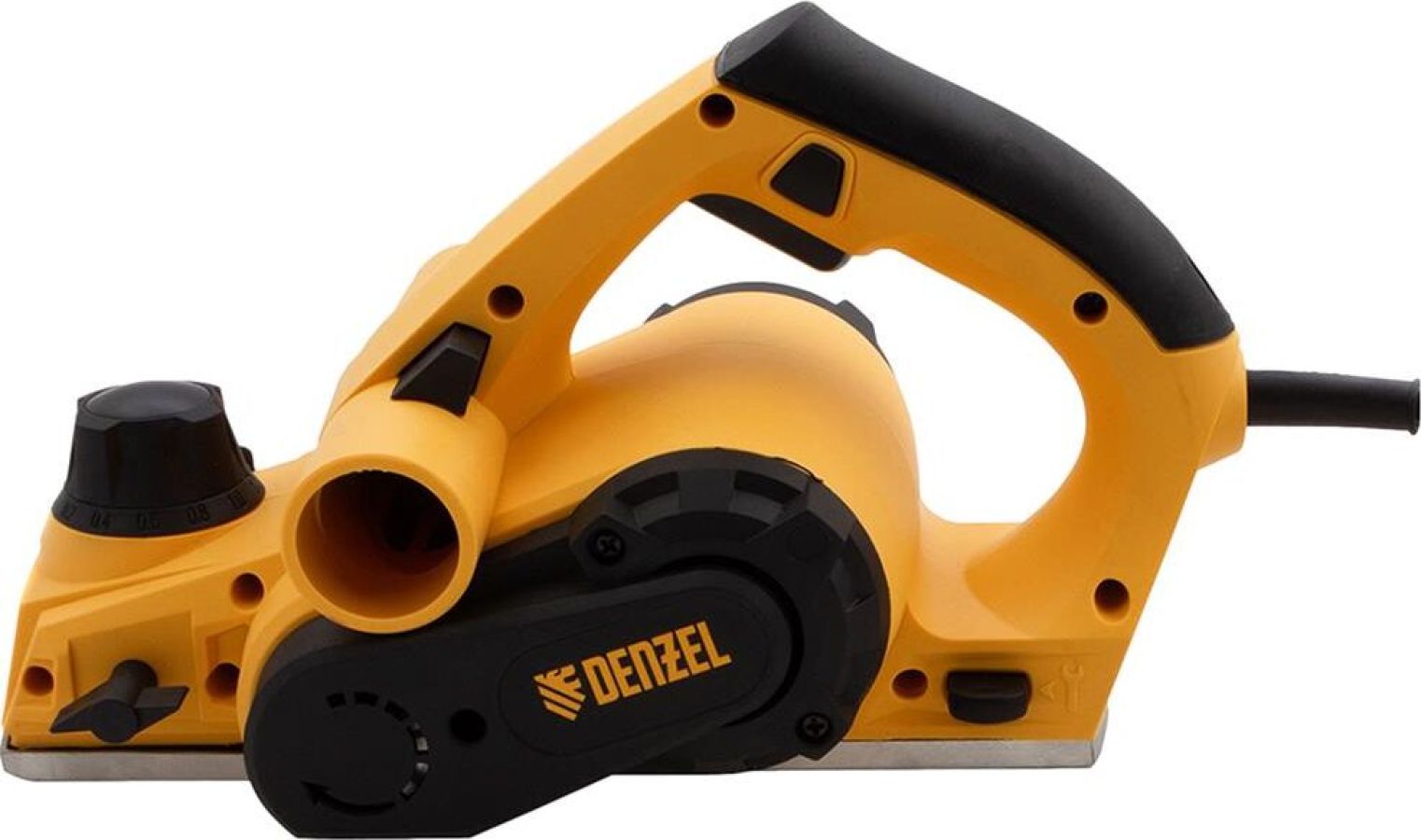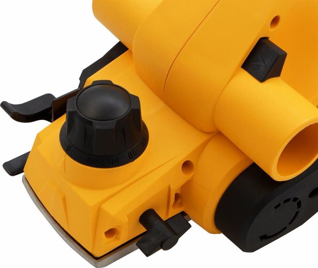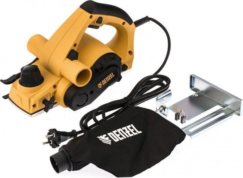 Рубанок электрический Denzel предназначен для обработки плоских поверхностей заготовок из древесины и ее производных, снятия фасок, выборки четверти (ступени). Особенности: оригинальная конструкция узла переключения направления выброса стружки, обеспечивающая улучшенную вентиляцию канала выброса в любом положении; 11-позиционная регулировка глубины строгания; функция "выборки четверти" 18 мм; алюминиевая подошва; индикатор включения Преимущества: функция переключения выброса стружки, уменьшающая вероятность засорения канала и позволяющая работать долгое время без его очистки; выключатель с защитой от случайного пуска; алюминиевая подошва; Продуманная эргономика и обрезиненная рукоятка делают использование машины более комфортным; Режущий барабан рубанка оснащен широко распространенными двухсторонними лезвиями. Оригинальная конструкция правой опоры барабана позволяет получать четверть глубиной до 18 мм, что является лучшим показателем в своем классе.