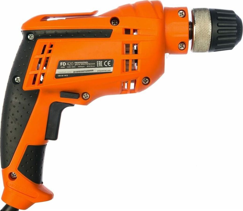 Частота вращения, об/мин 3000, Макс. диаметр сверления (сталь/дерево), мм 10/20, Тип патрона быстрозажимной, Регулировка скорости, положений, Макс. диаметр сверла, мм 10, Потребляемая мощность, Вт 450, Наличие реверса, Защита от пыли, Прорезиненная рукоятка, Прорезиненный морозостойкий кабель.