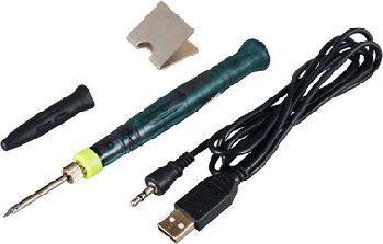 Паяльник USB Мини предназначен для ручного монтажа радиоэлементов, имеет сверхкомпактный размер. Отличительной особенностью паяльника является питание 5 V/8 Вт от USB порта. Идеально подходит для экстренного ремонта электроники во время поездок, просто подключите к компьютеру, ноутбуку, нетбуку или любому оборудованию, имеющему свободный USB порт. Рукоятка паяльника выполнена из термостойкого пластика, а нагревательный элемент керамический. В комплекте поставляется шнур подключения, защитный колпачок для жала и подставка под паяльник. Скорость разогрева жала: не более 15 секунд, а охлаждения не более 30 секунд. Рабочая темпа жала: 400...450 ?