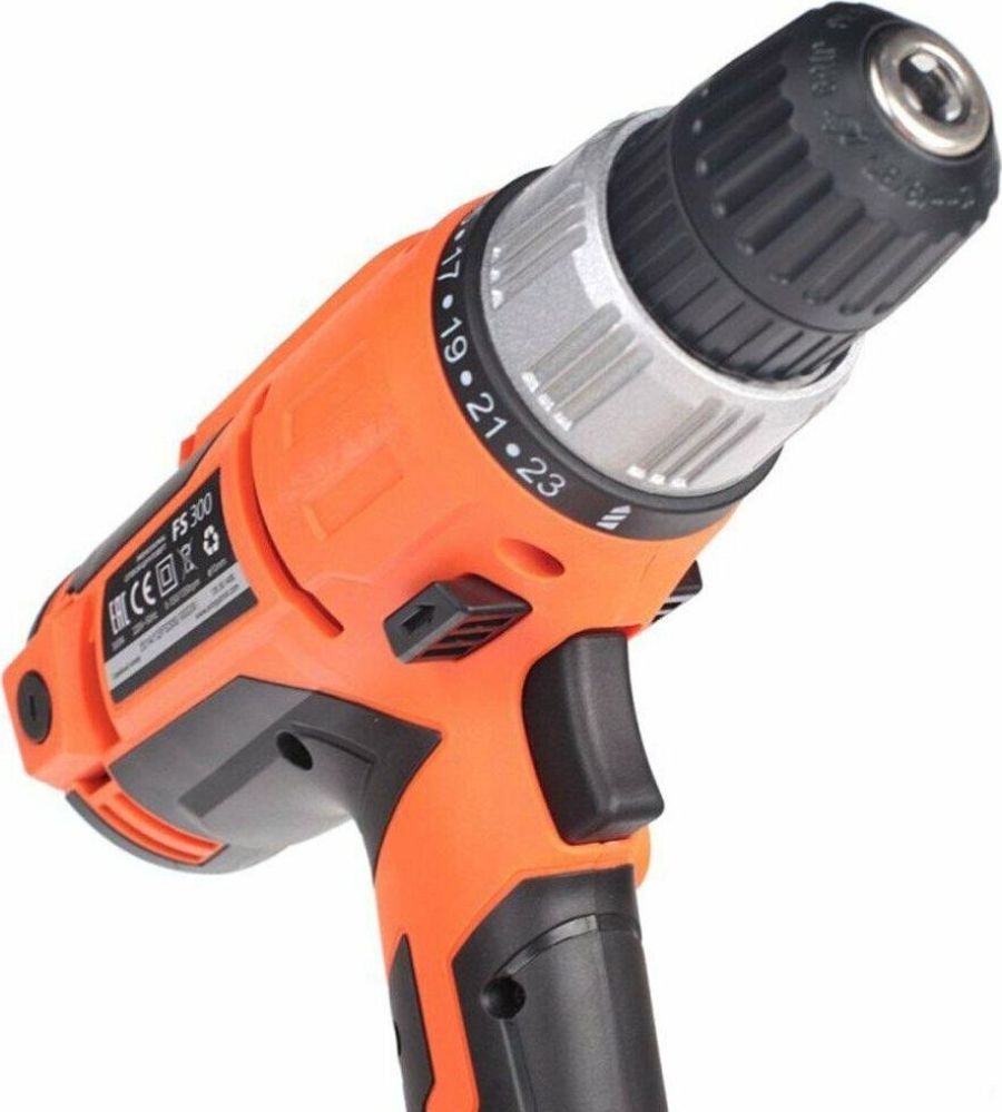 Потребляемая мощность, Вт 300, Наличие реверса, Тип патрона быстрозажимной, Диаметр патрона, мм 10, Количество скоростей 2, Прорезиненная рукоятка, 1 скорость, об/мин 0-350, 2 скорость, об/мин 0-1350, Прорезиненный морозостойкий кабель, Регулировка скорости, положений, Макс. крутящий момент, Нм 35, Число ступеней крутящего момента 23+1, Макс. диаметр сверления (сталь/дерево), мм 10/20.