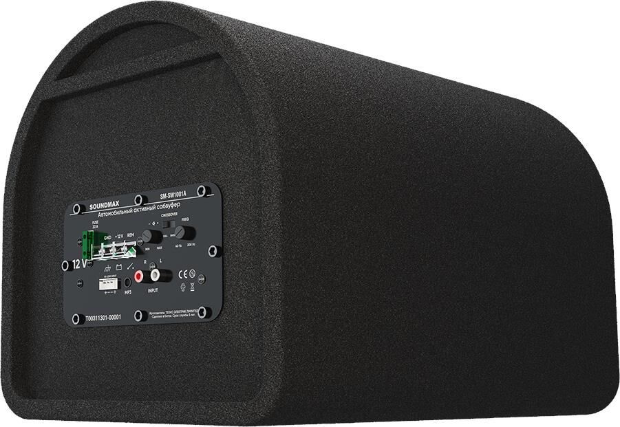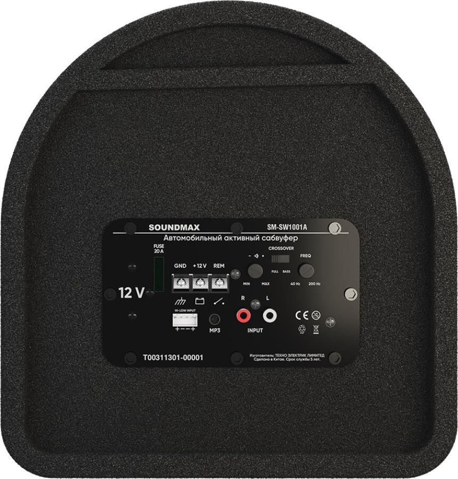 АВТОМОБИЛЬНЫЙ АКТИВНЫЙ САБВУФЕР 25-см (10”) Сабвуфер со встроенным усилителем класса A/B Функция Bass Boost Номинальная выходная мощность (RMS): 200 Вт Пиковая выходная мощность: 1200 Вт Диффузор из непрессованной целлюлозы с влагозащитной пленкой Диаметр диффузора: 25 см (10”) Диаметр звуковой катушки: 3.81 см (1.5”) Высококачественный ферритовый магнит: 35 унций (992 г) Импеданс: 4 Ом Чувствительность: 88 дБ Диапазон воспроизводимых частот: 45 - 1000 Гц Габариты устройства: 310 x 292 x 518 мм Вес: 7.3 кг
