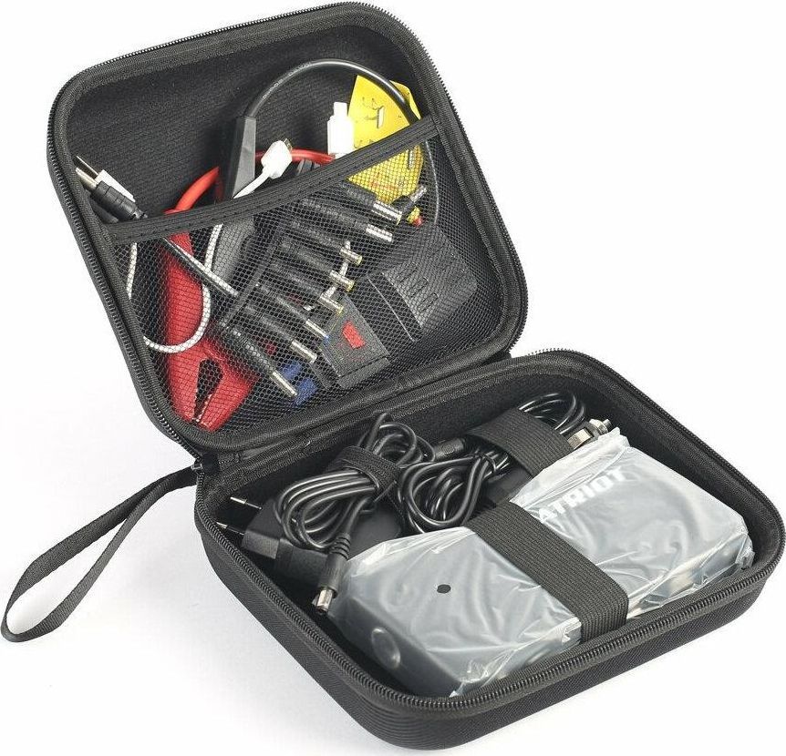 Комплектация: адаптер для телефонов, силовые зажимы для подключения к автомобильному аккумулятору с защитой, кейс для хранения и транспортировки, кабель и разъемы для ноутбуков, : сетевой адаптер, адаптер зарядки от прикуривателя автомобиля