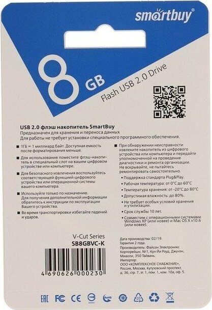Серия модели Серия V-Cut Встроенная память Встроенная память (ROM) 8 ГБ Скорость чтения Максимальная скорость чтения до 25 МБ/сек Свойства записи Максимальная скорость записи до 10 МБ/сек Корпус Материал корпуса пластик/ металл Интерфейсы Интерфейс подключения USB 2.0 Комплектация Количество в упаковке 1 шт Цвет Цвет черный Габаритные размеры Высота 10 см Ширина 10 см Глубина 2 см