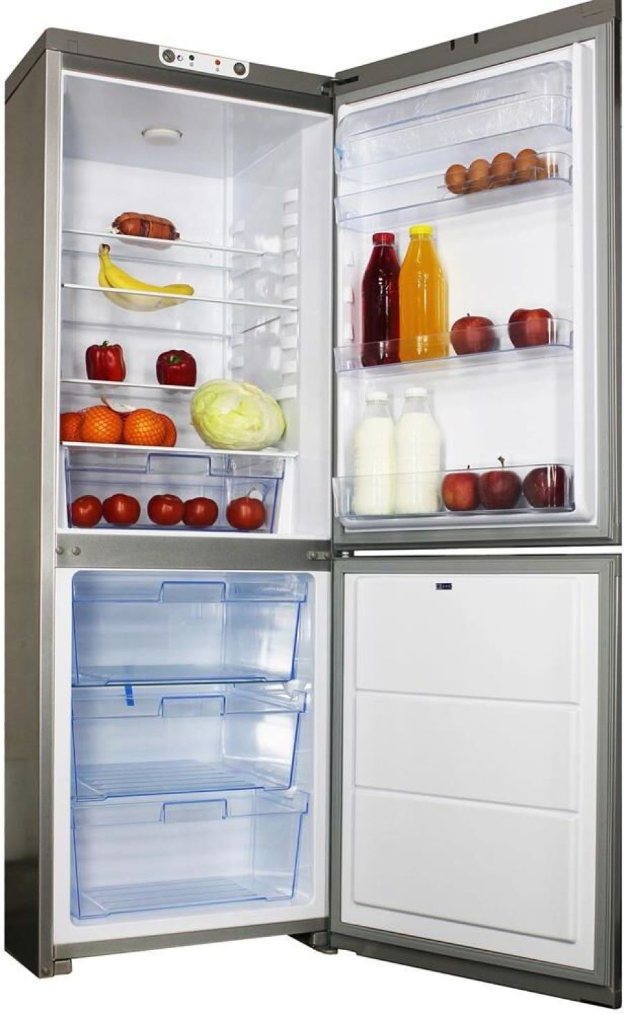 Габаритные размеры Нетто (ВхШхГ), cм. 172х60х61,5 * Цвет серебристый * Габаритные размеры Брутто (ВхШхГ), cм. 177х61х62,5 * Общий объем, л. 320. Объем холодильной камеры, л. 200. Объем морозильной камеры, л. 120 * Класс энергетической эффективности A * Климатический класс N * Управление электромеханическое * Размораживание холодильной камеры капельная система * Размораживание морозильной камеры ручное * Номинальное напряжение, В 220-230 Потребление энергии 310 кВт/год * Хладагент и его количество R600a 54 г * Производительность замораживания, кг/сут не менее 5 * Уровень шума, дБ 41 * Температура в МК (НТО), °С не выше -18 * Температура в ХК, °С не ниже 0 * Температура в ХК, °С не выше +10 * LED освещение * Перевешиваемые двери *