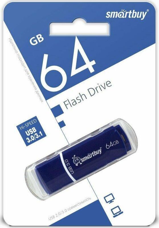 64 Гб Интерфейс: USB 3.0; Совместимость с ОС: Windows XP/ 2000/ Vista/ 7, Mac OS 8.6 и Linux 2.4.0 (или выше).Материал корпуса: Полированный пластик